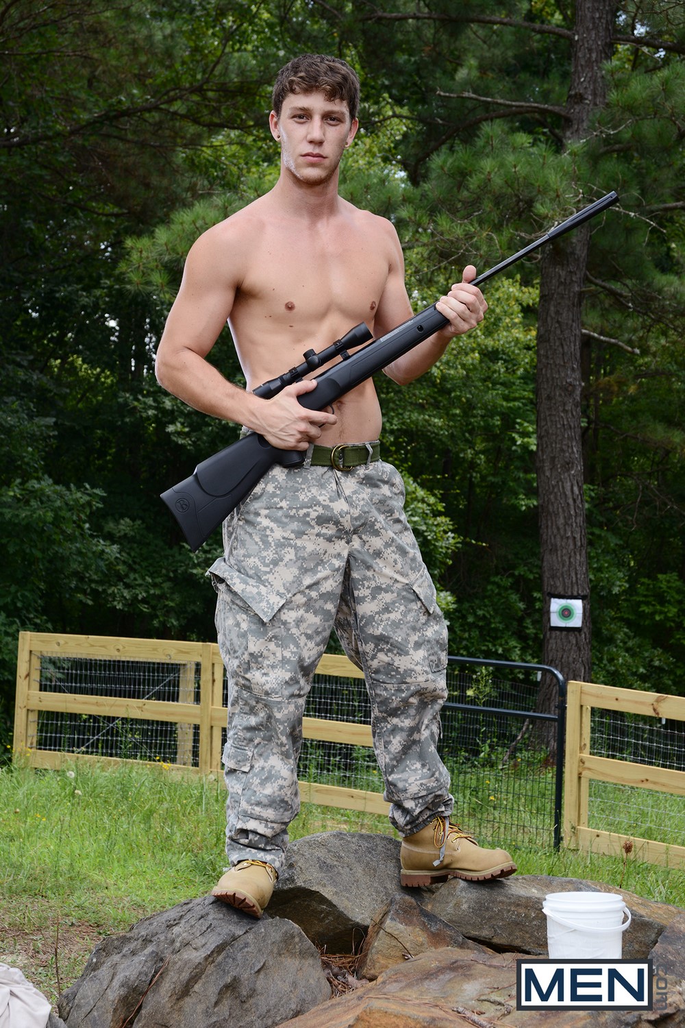 Paul Canon and Adam Bryant are out in the woods when the topic of sexuality comes up. Adam has never even gotten his cock sucked by another man before, that is until now. Paul drops to his knees to service Adam’s thick tool. Adam them pounds Paul’s sexy hole.