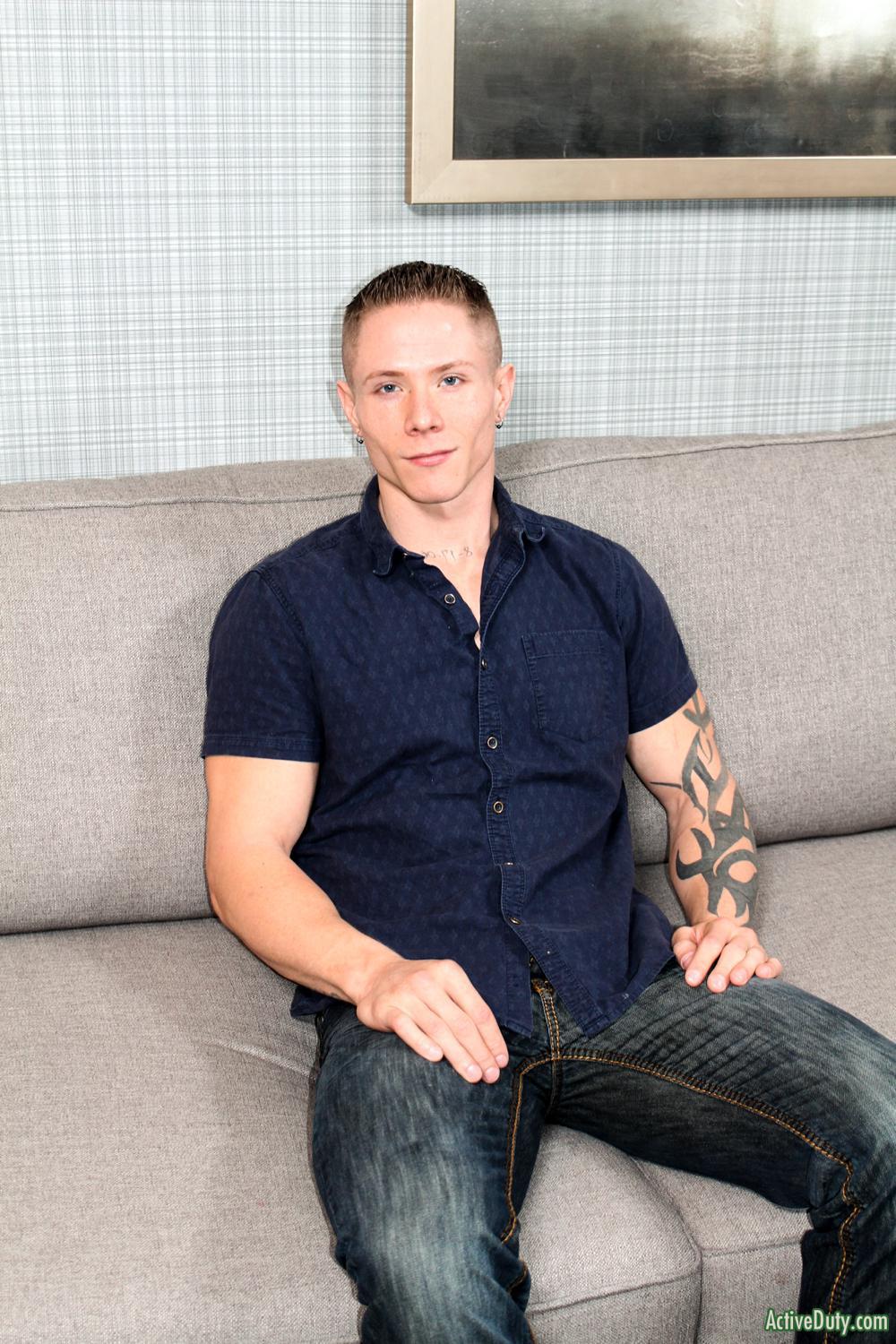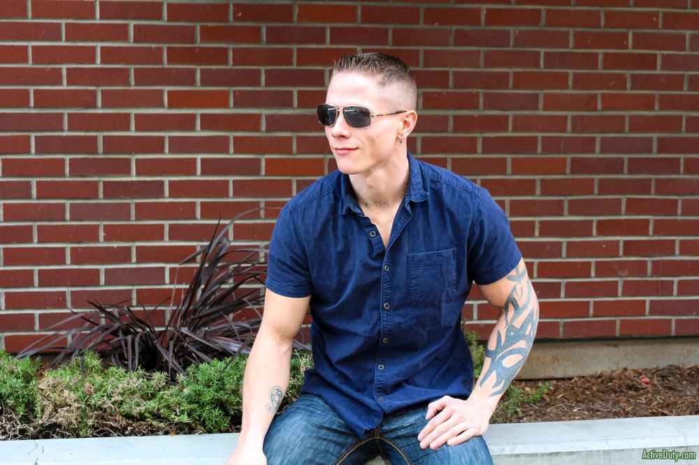 Active Duty introduces us to another hot and muscular tatted soldier. Meet Guy Houston. He’s the quiet type yet shows lots of promise as a dominate top and I’m sure eventually you all will see that soon enough. Guy has never been with a man let alone has Claude sit quietly by filming him but once you see his amazing eyes and physique you’ll know he is the man for the job.His body is strong, ripped and the veins are pulsating with excitement as he finishes his chat with Claude.