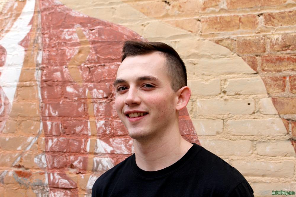 Now this is what I call a nice breath of something different for Active Duty! This incredibly adorable, smart, funny, charming fresh recruit is Jordan Graves. He takes a little longer than usual to even take off his outermost garment. Once he does, we see his outrageous, yellow boxer briefs, of fairly sheer material, with something starting to fatten up underneath!