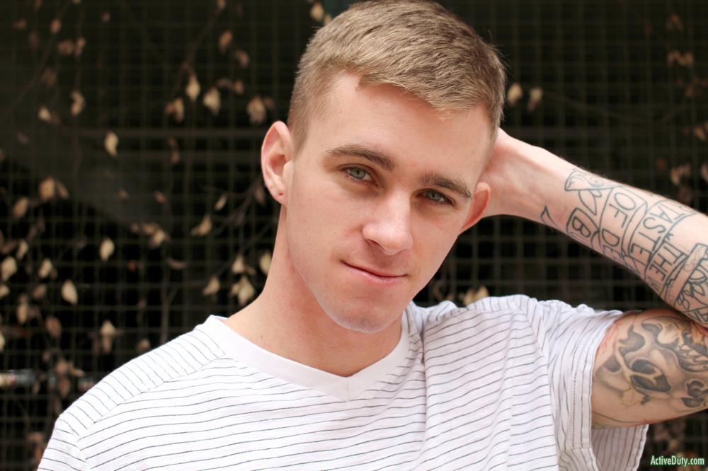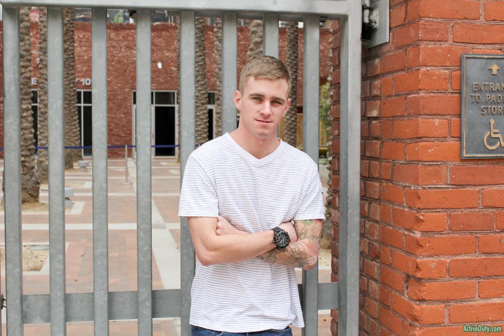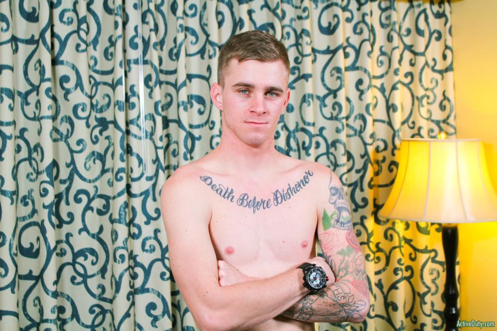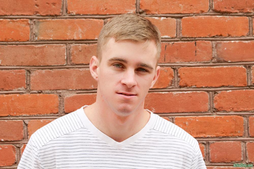 Handsome new recruit Ryan Jordan works his big cock at Active Duty