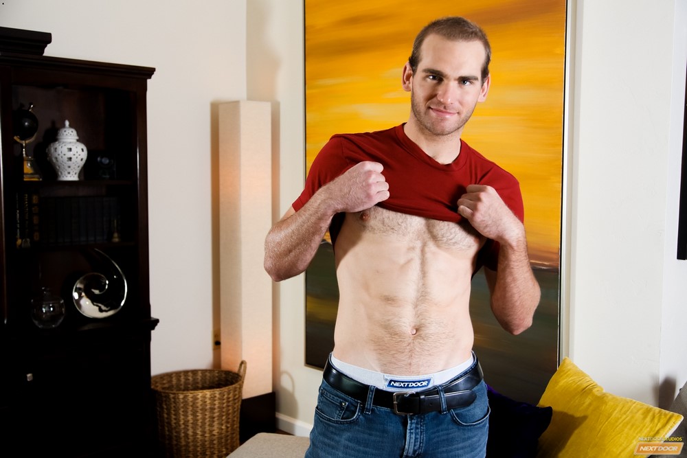 Jonah Marx gets more than he bargained for in Next Door Studios latest release, called “First Time Assplay“. As he lifts up the gym bag left by workout buddy Archer Jaques, out falls Archer’s little pink toy, and after tinkering with it for a second Jonah decides it might be fun to try, so he reclines on the couch and puts it to task, fucking himself with it manually before initiating the automatic controls on it.
