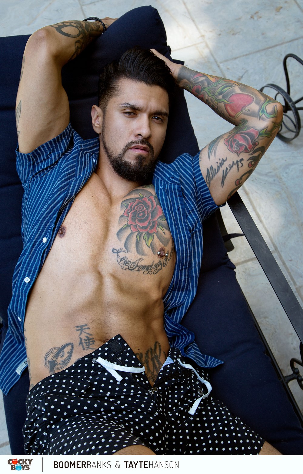 Both Boomer and Tayte are sensual, sexy men who both embrace pleasure in any form. So pairing them together was a no brainer. Boomer has a huge, uncut cock that Tayte has been wanting to get his hands on for a long time. So with the summer heat and an inviting pool, Boomer and Tayte didn’t need much foreplay as they both were ready for some deep action.