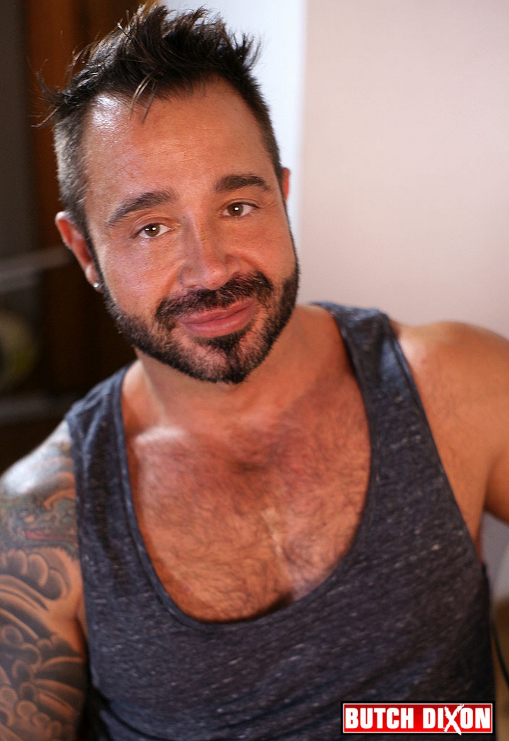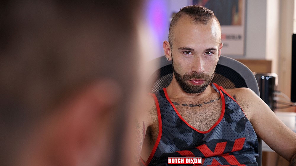 Butch Dixon‘s favourite Spanish Cock-slut is back – Martin Mazza, in all his handsome, hairy glory and now this über-bottom has decided to be a top for a change. But when you’ve got the delicious buns of Angel Garcia to eat out, spread and fuck its hard to say ‘no’ to fucking Angel.