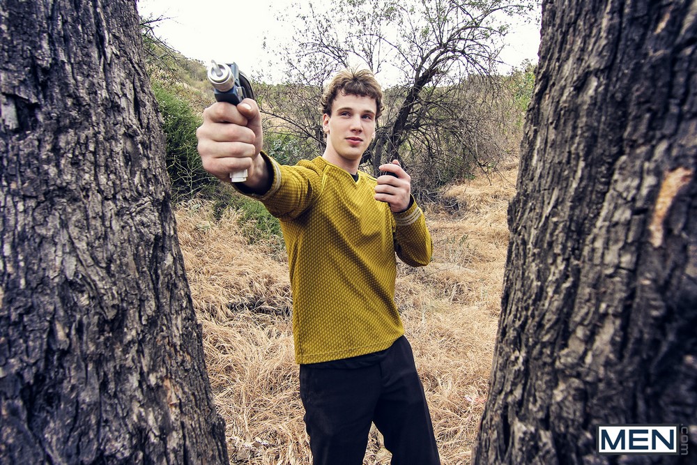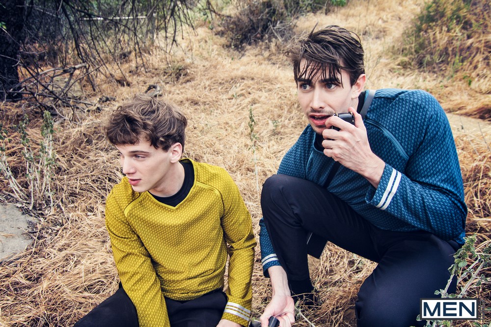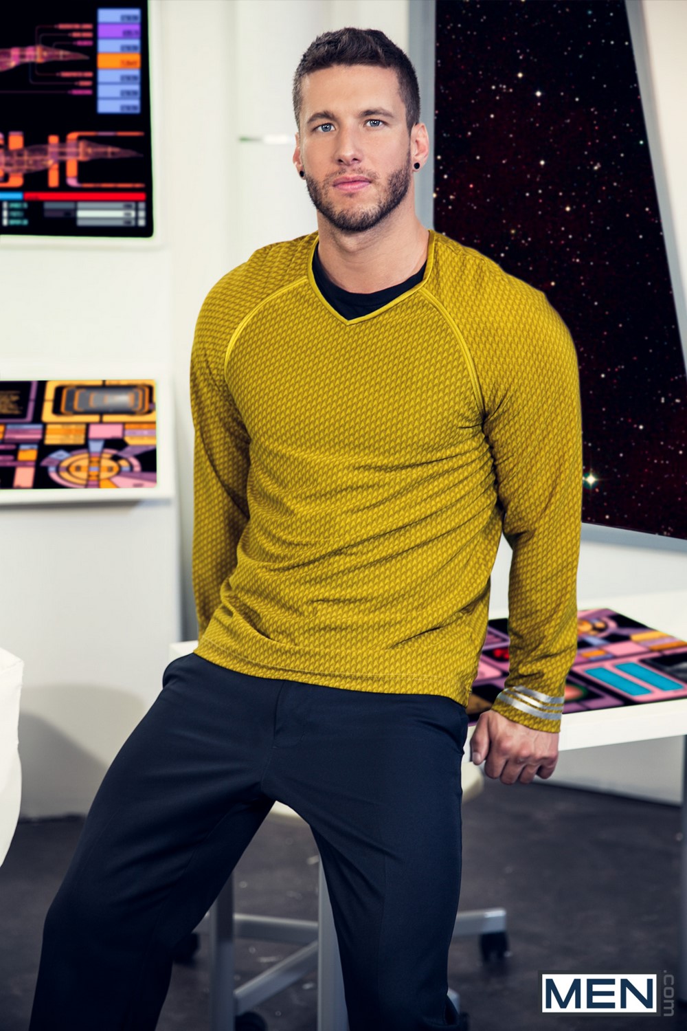 The Men.com network has today released the first scene from their brand new gay porn parody “Star Trek” series. Usually, the studio saves the orgy scenes for last, but this time they have paired up Brendan Patrick, Donny Forza, Jack Hunter, Jordan Boss and Rod Pederson for a hot five-guy orgy in the very first scene.