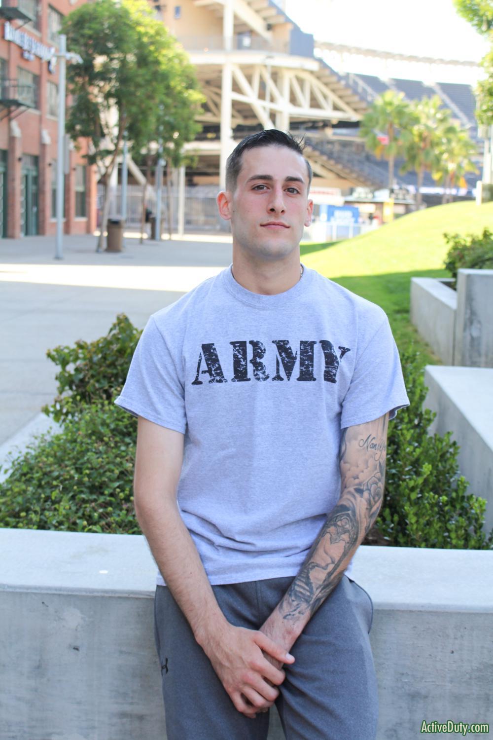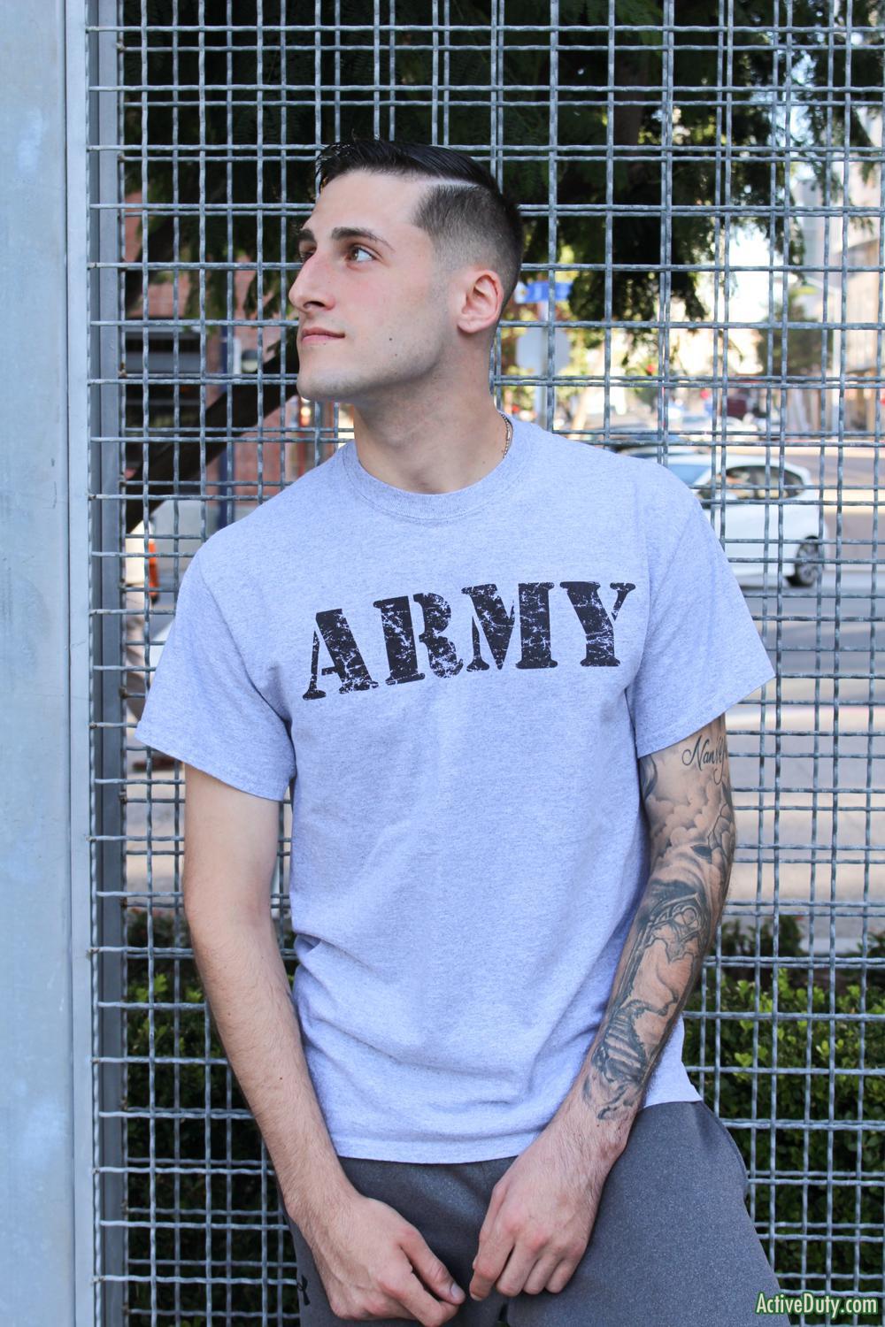 Then we get James standing, with Claude getting right underneath his majestic cock. Boy, that thing is a hall-of-famer. Watch James play with his greasy balls during this part. Gosh, I bet he’s gonna make lots of fellow soldiers very happy at Active Duty. Join James and enjoy yourself just like he does. James sure has the attitude and the look we want here for our squad. I think he’ll become a quick favorite around here.