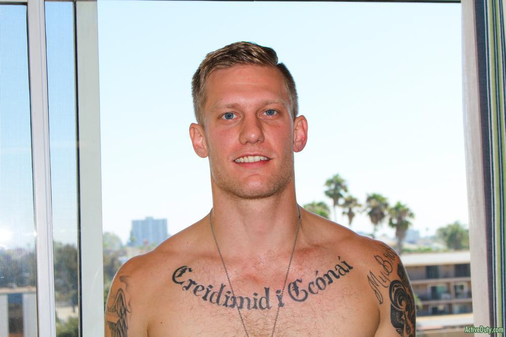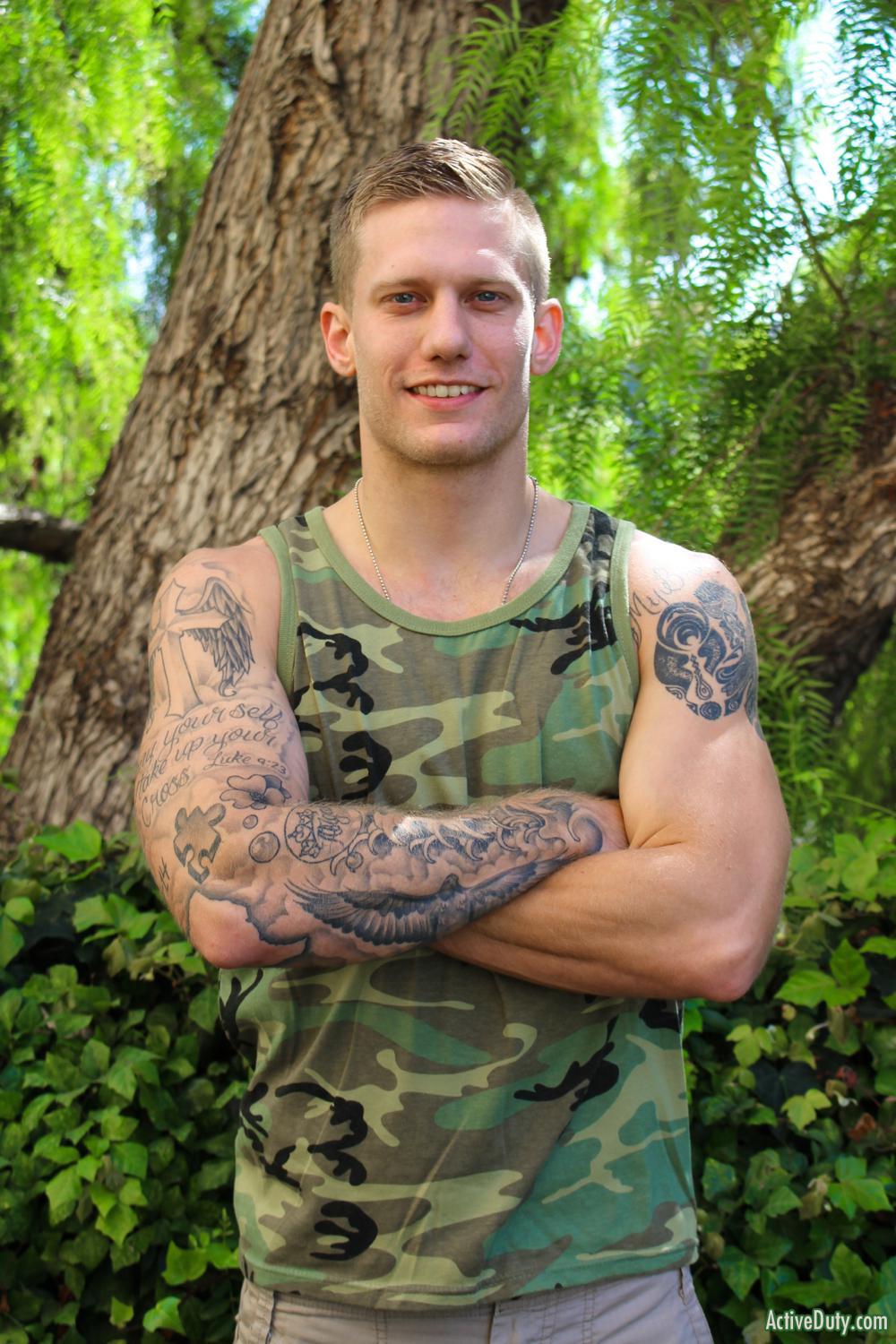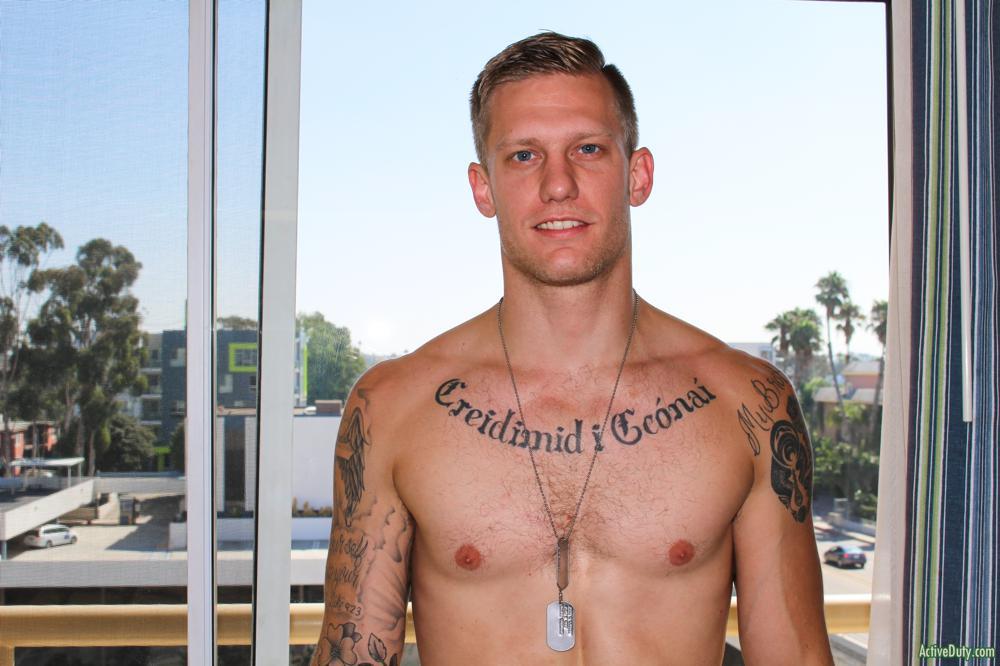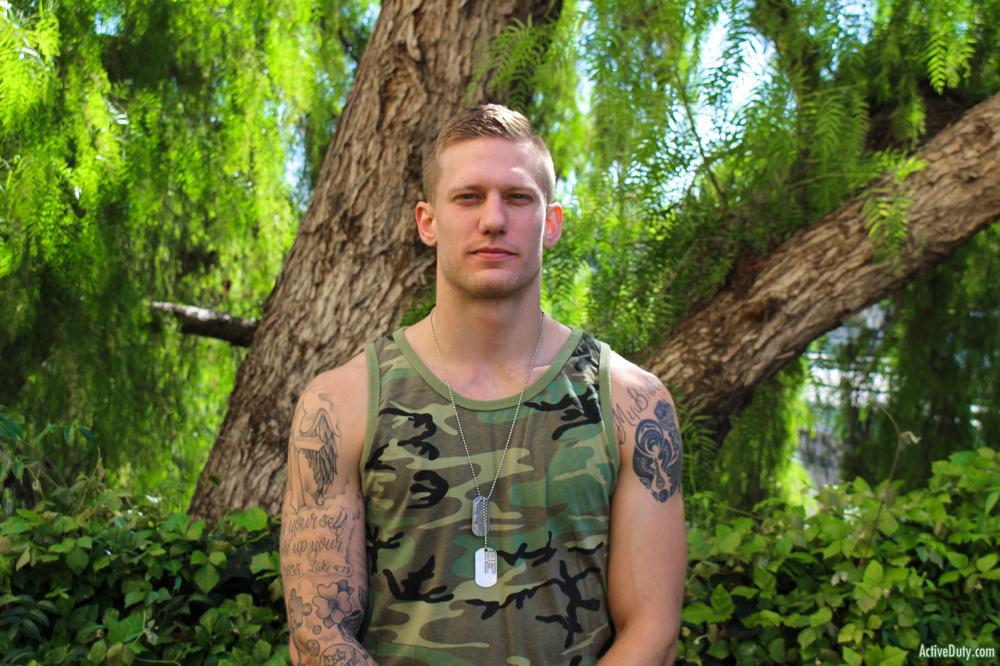 Watch new recruit Tex Long stroking his fat cock at Active Duty