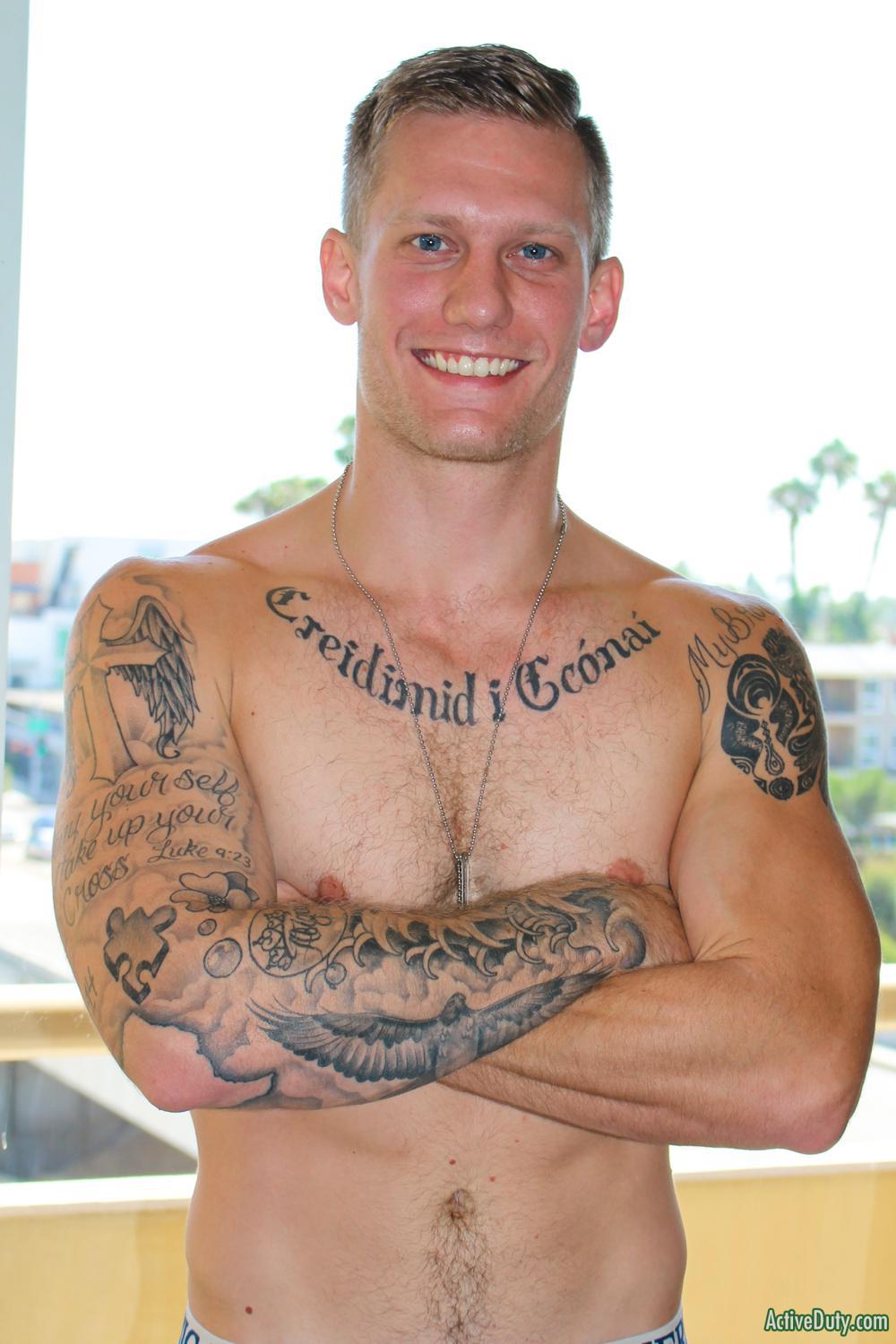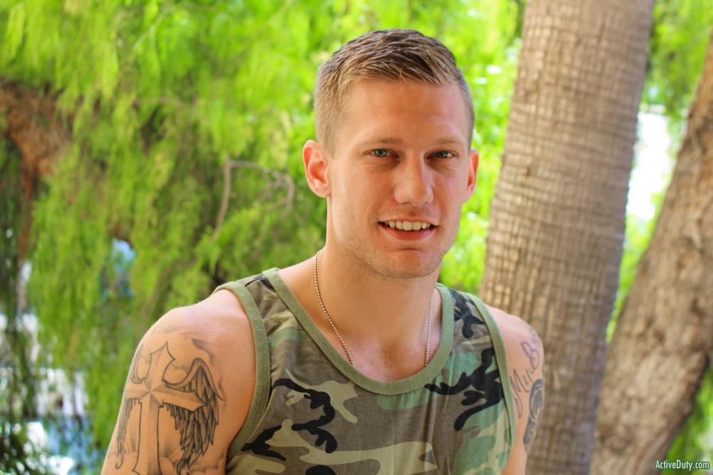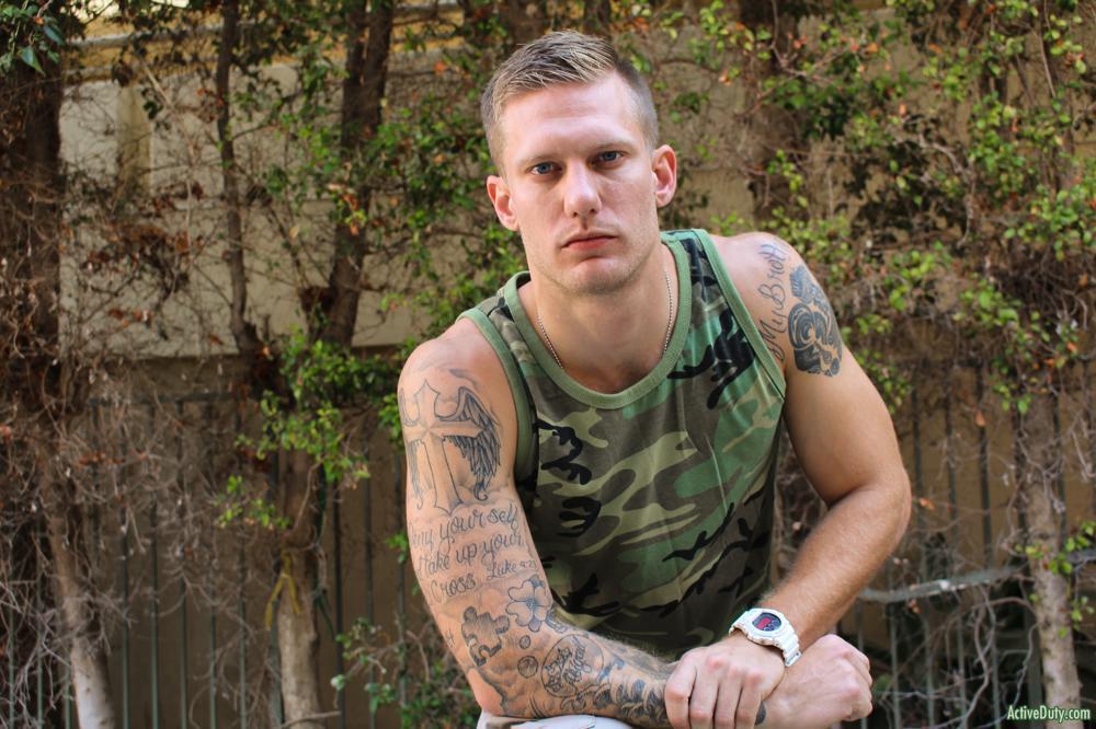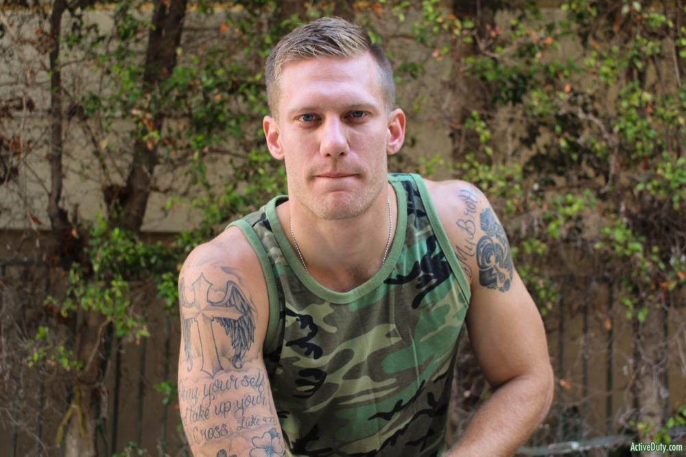 Hey Troops, Say ‘howdie’ to Mr. Tex Long. He’s Active Duty‘s newest recruit and he’s absolutely delicious! He’s a tall, fun-loving gym rat with just a great attitude. That’s right, don’t let that hard, chiseled exterior fool you. Tex simply exudes a sweet warmth that I know will bring a wonderful vibe to the squad.Once Claude lets him get down to it, Tex pulls off his tank top and we see his lightly tattooed, heavily toned upper body. Tex has the type of body I can’t resist: his long, powerful torso and those athletic arms are so sexy!