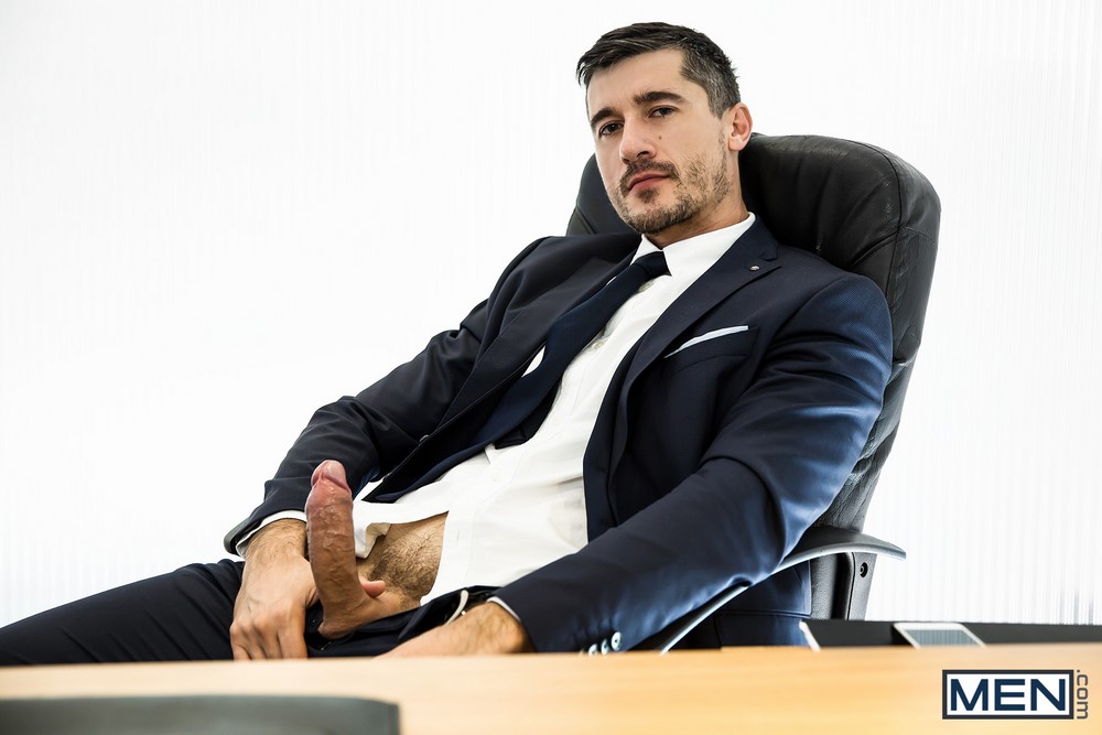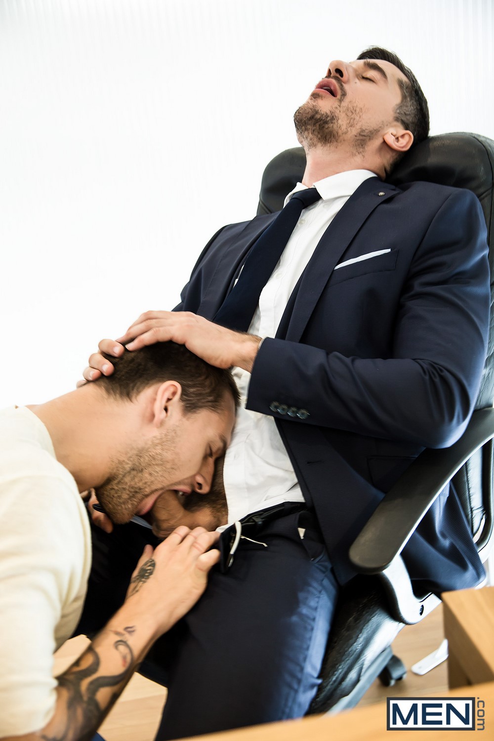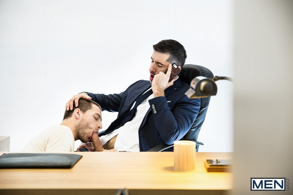 Jay Roberts is in a panic when Tayte Hanson shows up at his office. A quick blow and a deal to fire Tayte’s ex-boyfriend later and Jay is inside Tayte’s pretty little hole. Jay rams him full of delicious dick over his work desk before getting him to ride that cock on top.