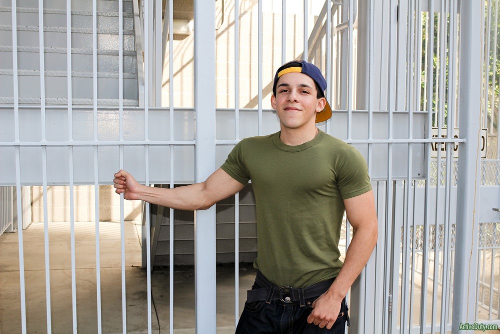 Young and hung recruit Billie Starz jerks off for Active Duty