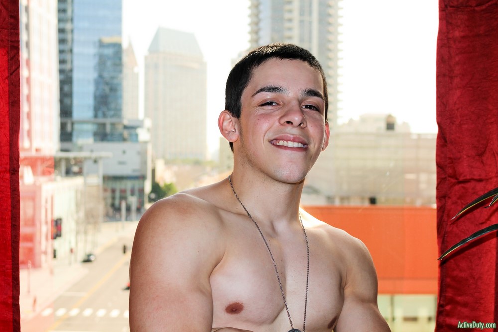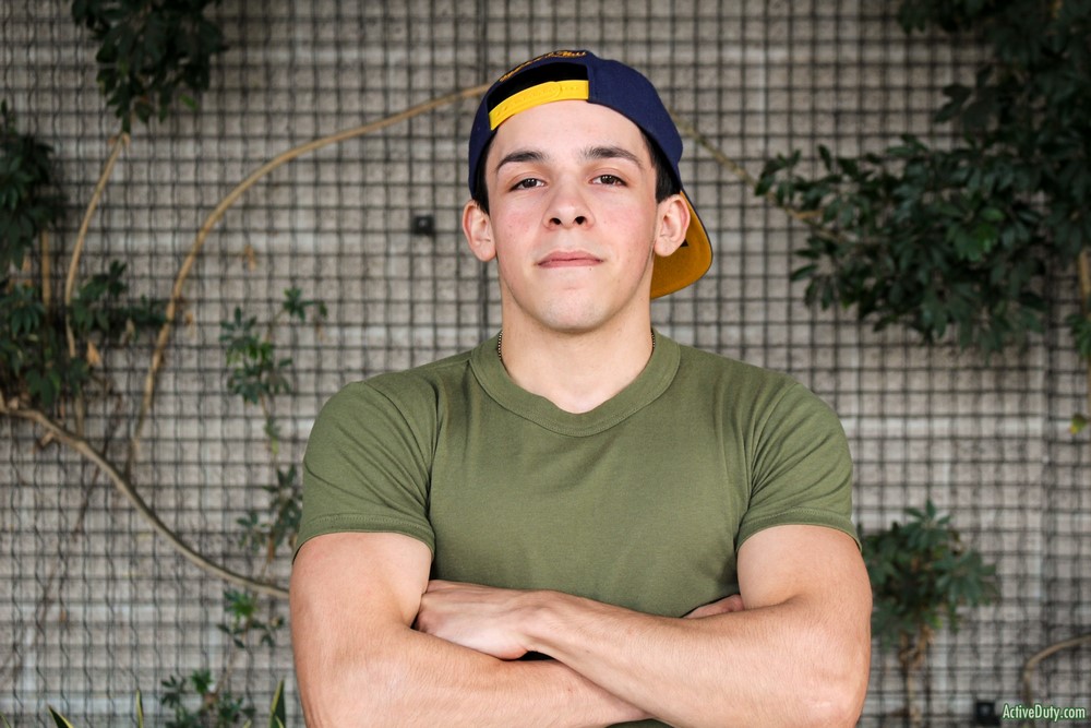 Wow! Active Duty has a cute, young and hung recruit for us. His name is Billie Starz and you ain’t gonna believe this incredible 19-year-old hunk! Billie strokes his hard dick on the couch and Claude gets low and tight. Just look at that gorgeous erection in Billie’s hands. I’m already anxious to see this boy in action! I know he’ll be a huge hit with the fellas.
