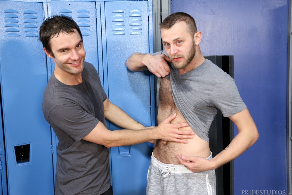 Chandler Scott fucks Cameron Kincade in a hot locker room scene from Pride Studios