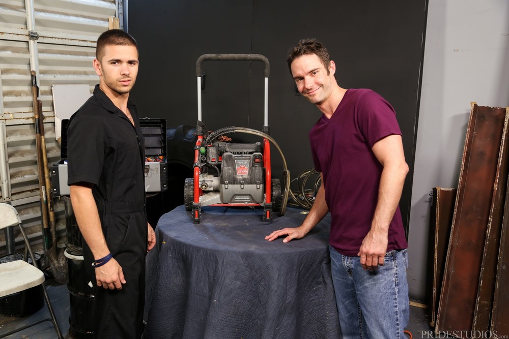 Today’s Pride Studios release is called “Trade For Pay” and starts with Rico Leon working in his workshop when Cameron Kincade comes in to check on his pressure washer that Rico was supposed to fix. Rico shows Cameron that the motor is shot on it and says there is nothing he can do to get it to work. However, there is still the matter of payment for labor. Cameron does not want to pay him because it was not fixed, but Rico has other ideas on how Cameron can pay him.
