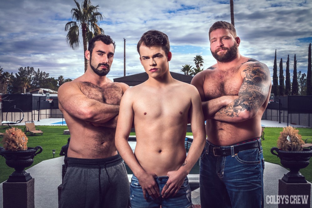 Colby’s Crew has released the third scene from “Don’t Tell Mom”. It’s a hot intergenerational threesome. Revenge is sweet. After Colby Jansen admitted to Jaxton Wheeler that he had to fuck his stepson to protect their secret little affair from the dark-haired jock’s wife, Dad promptly calls home the devious Abe Andrews for a scolding. But no typical scolding that will be! Confronted by his stepdad about blackmailing Colby, the wicked teen denies any wrongdoing. This only pushes the two jocks into horny anger.