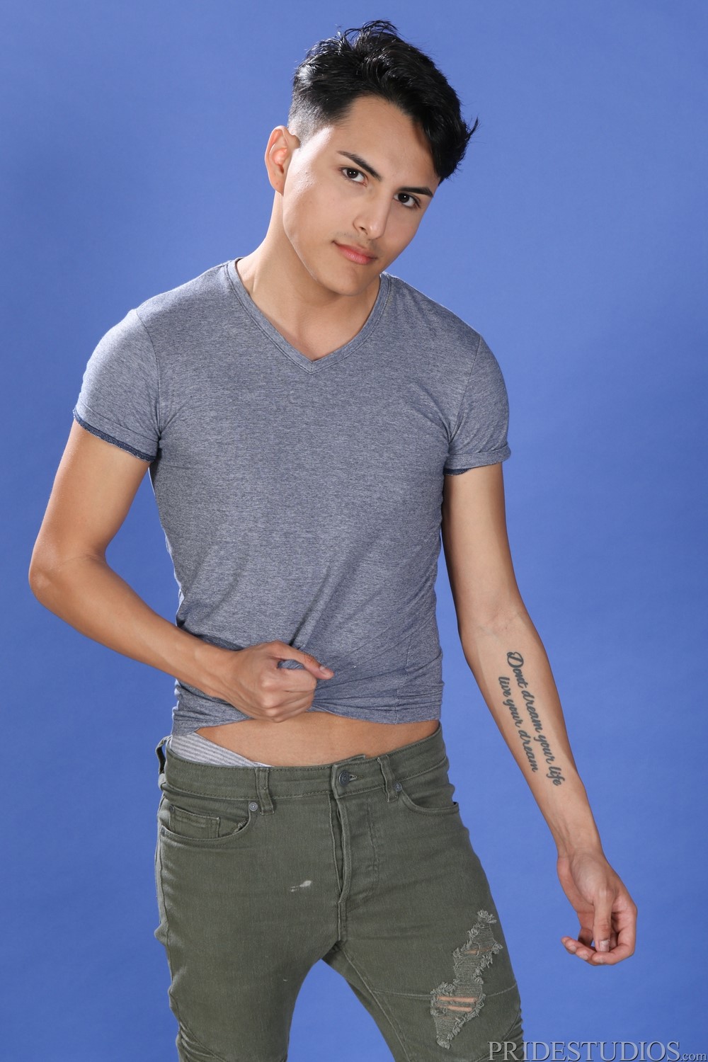 In the latest release from Pride Studios, hung photographer Jimmy Durano is snapping photos of his new model Marco Montgomery. They’ve been acquainted for some time now but Jimmy schedule has finally opened up and Marco can now get the pictures he’s always wanted to pursue is modeling career. Jimmy continues to direct Marco on how to position his body.