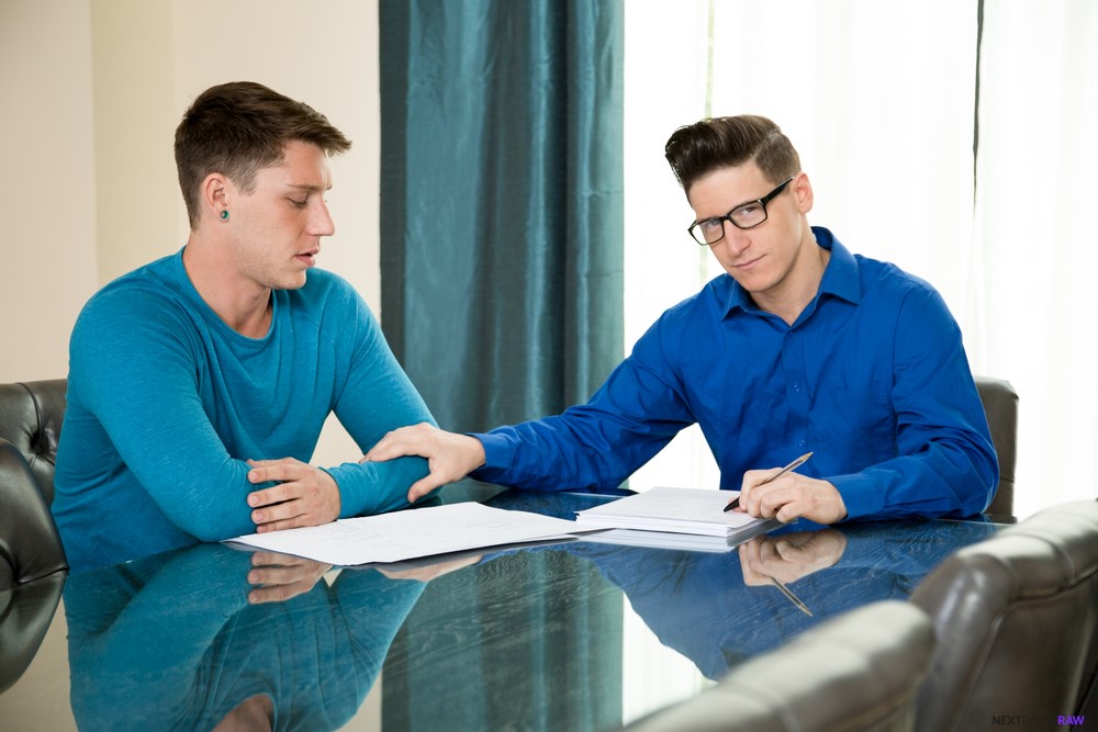Today’s release from Next Door Raw is called “Physical Rent” and it’s a hot bareback flip-fuck scene. With his shitty credit and a lack of network resources, Paul Canon was pretty sure his rental application was going to be denied, and sure enough, property manager Dalton Riley delivers the bad news after running the credit check.