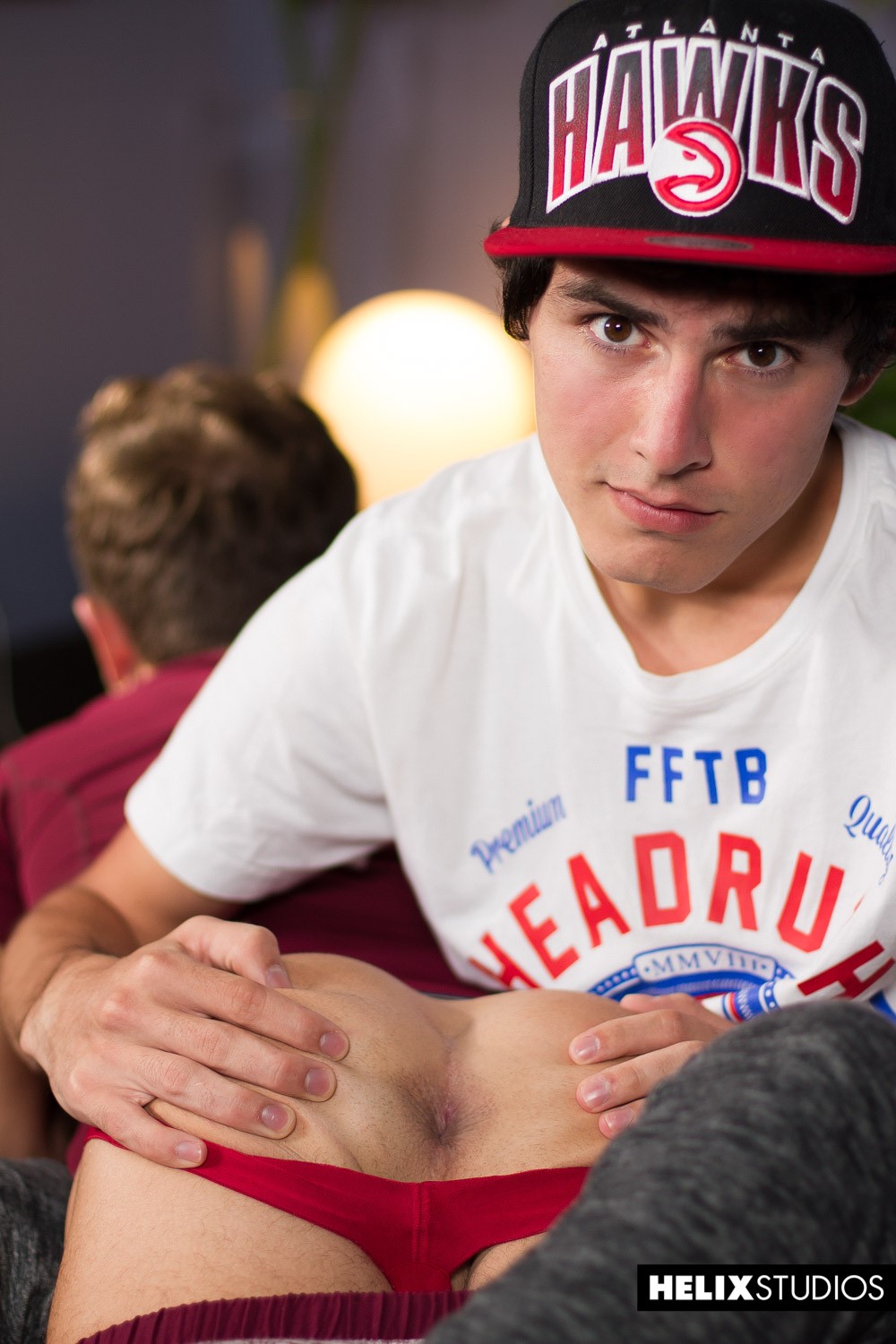 Logan Cross is one lucky lad. After a titillating tickle fight, Helix Studios newcomer Xavier Ryan (who had already filmed a scene for MEN) takes control of the twink. He sets his sights on Logan’s amazing bubble butt and works the hell out of it like a 9 to 5. Cross always looks hot, but here in gray sweatpants his ample ass takes center stage.
