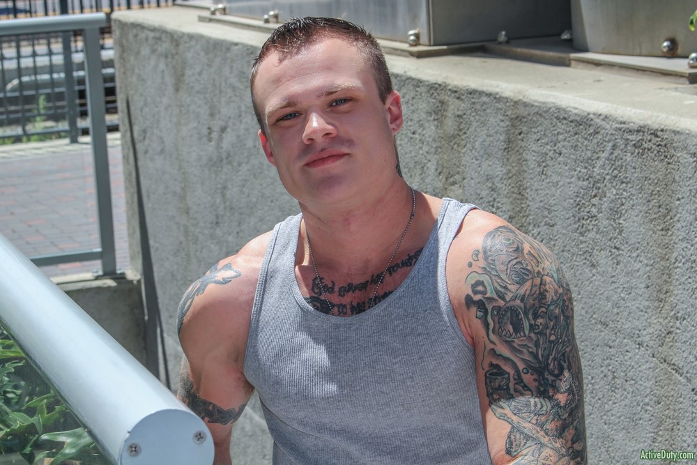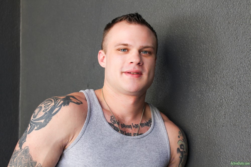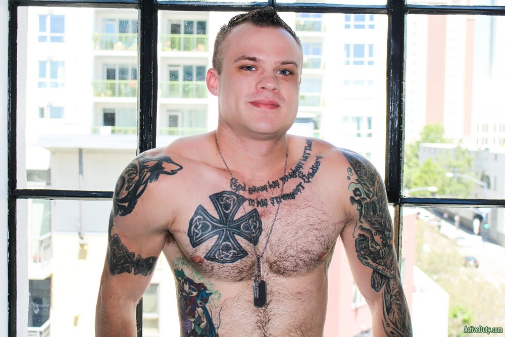Inked recruit Cody Smith rubs out a creamy load for Active Duty