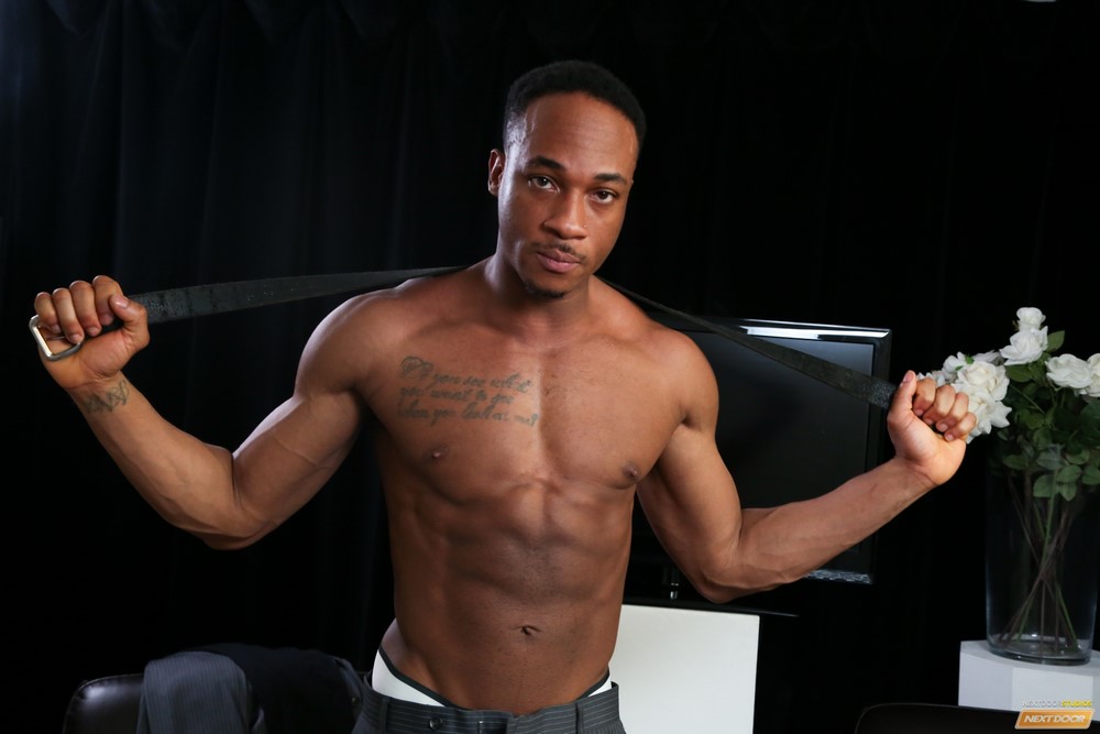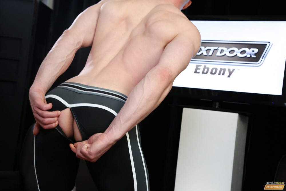 Hung stud Trent King and blond bottom boy Ryan Russell have been paired up for Next Door Studios‘ latest release, called “Special Reveal“. With special guest Trent King on hand to model a selection of sexy jockstraps, show host Ryan Russell is in hog heaven. Especially when Trent removes his suit to reveal his favorite jockstrap; a little red and black number that can barely hold his big cock at bay.