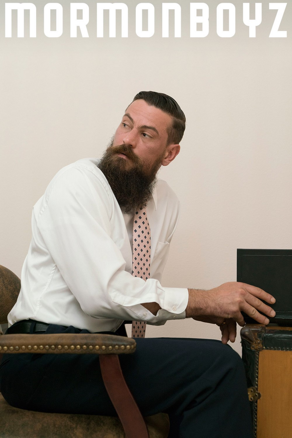 The latest release from Mormon Boyz is a hot bareback scene starring bearded stud Elder Garrett, hunky Brother Calhoun and sexy blond twink Brother Strang. Thee latter one gets fucked by both others and Elder Garrett takes Calhoun’s raw cock up his ass, too.