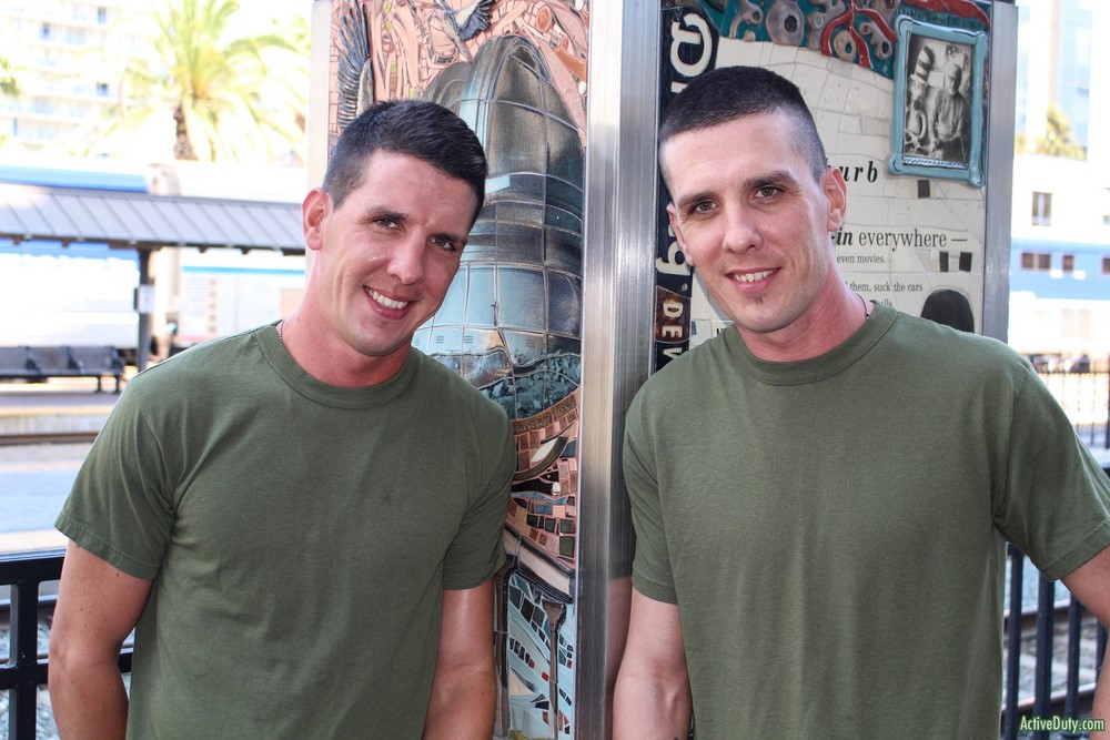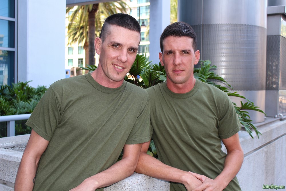 The guys from Active Duty have a special scene for us and this particular one doesn’t happen that often. They got two twin brothers stroking their big dicks for you. Michael Stax and Jacob Stax are 26 years old and love to camp and live up the night life. They are not shy and have had three ways in the past.