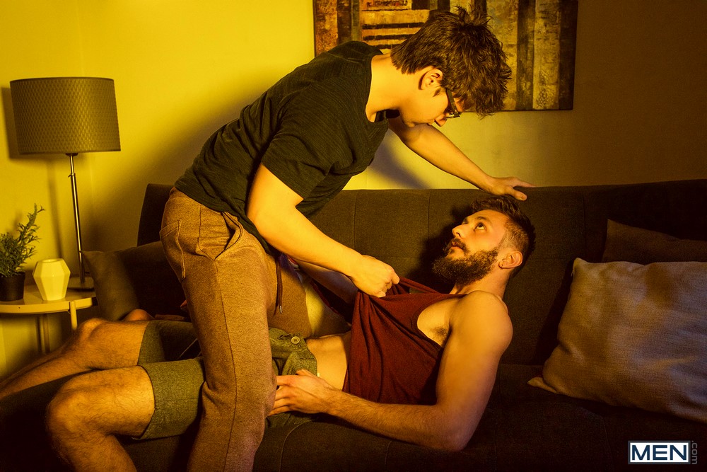 There’s a lot of kissing and cock-sucking action at the start of this scene. Next, John sits down on all fours and let Will penetrate his hole. The bottom is clearly hungry for cock and loves the pounding Will gives him. After a while, John gets on top and impales himself onto Will’s hard dick. The guys end in missionary position and both blow their loads.