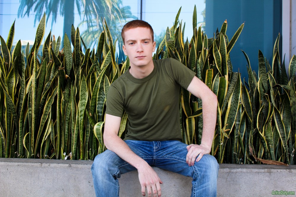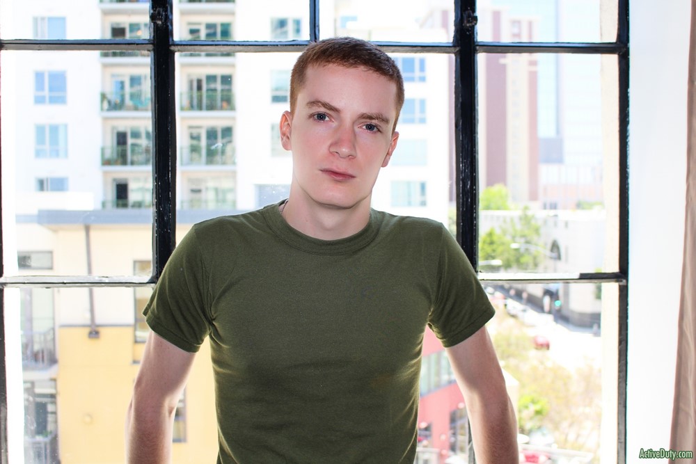 Rex Dixon is Active Duty‘s latest find. He’s 21 5’8 weighs 145lbs and loves walking his dogs or going to car shows. He also loves going to gun ranges and testing out the many weapons he has keeping his tactical arsenal up to par. Hope you are ready for a very sexy red headed creamy young man with a great cock. Rex loves to show off his smooth milky body as he plays with his hard dick.