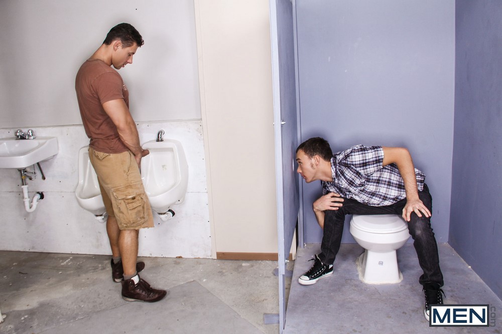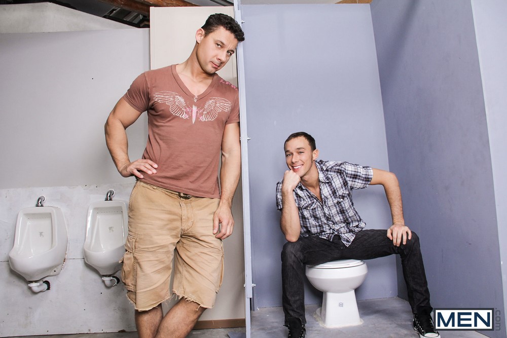 For this scene, Men.com has paired up Robert Van Damme and Kirk Cummings. The guys get nasty in a public bathroom. Kirk sucks Robert’s meaty cock through a glory hole, but Robert is looking for more than a warm mouth. He fucks Kirk’s ass in various positions, before spraying Kirk with his cum load.