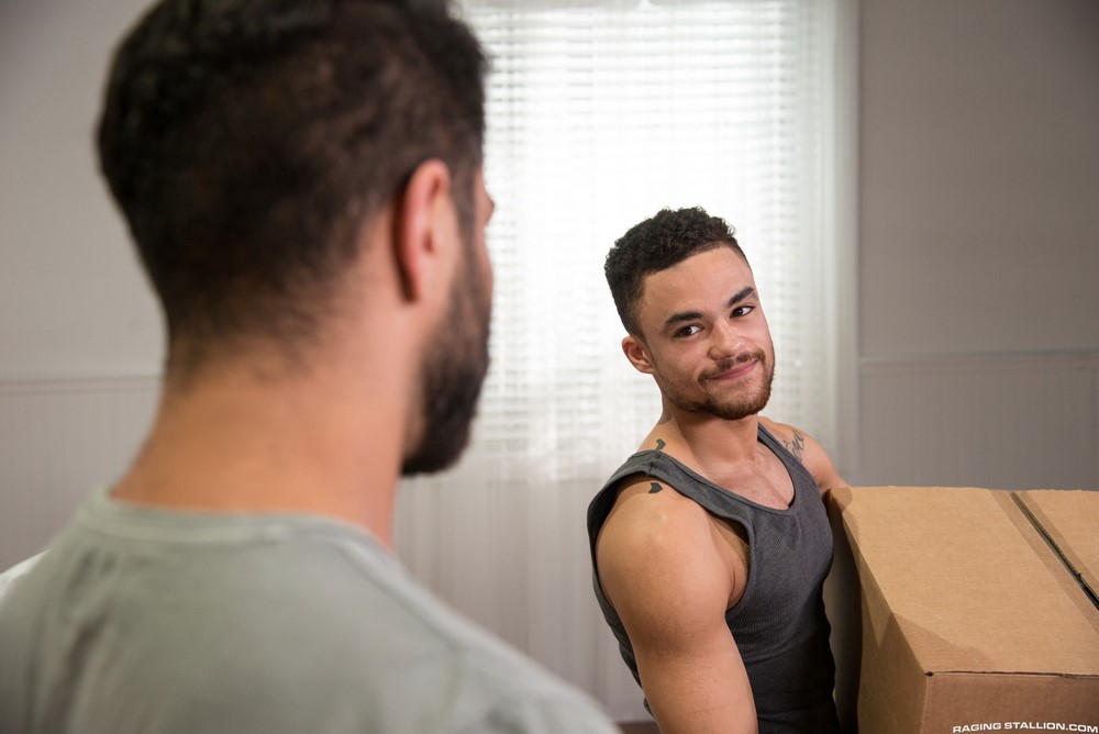 Raging Stallion has today released the fourth scene from “It’s Coming” and what a hot scene it is. The studio has paired up big-dicked stud Adam Ramzi and cock-hungry bottom boy Beaux Banks. Bearded stud Adam is the proud new owner of the infamous murder house. Boyfriend Beaux reluctantly helps him move in. What is the shadowy figure the security cameras pick up in the hallway?