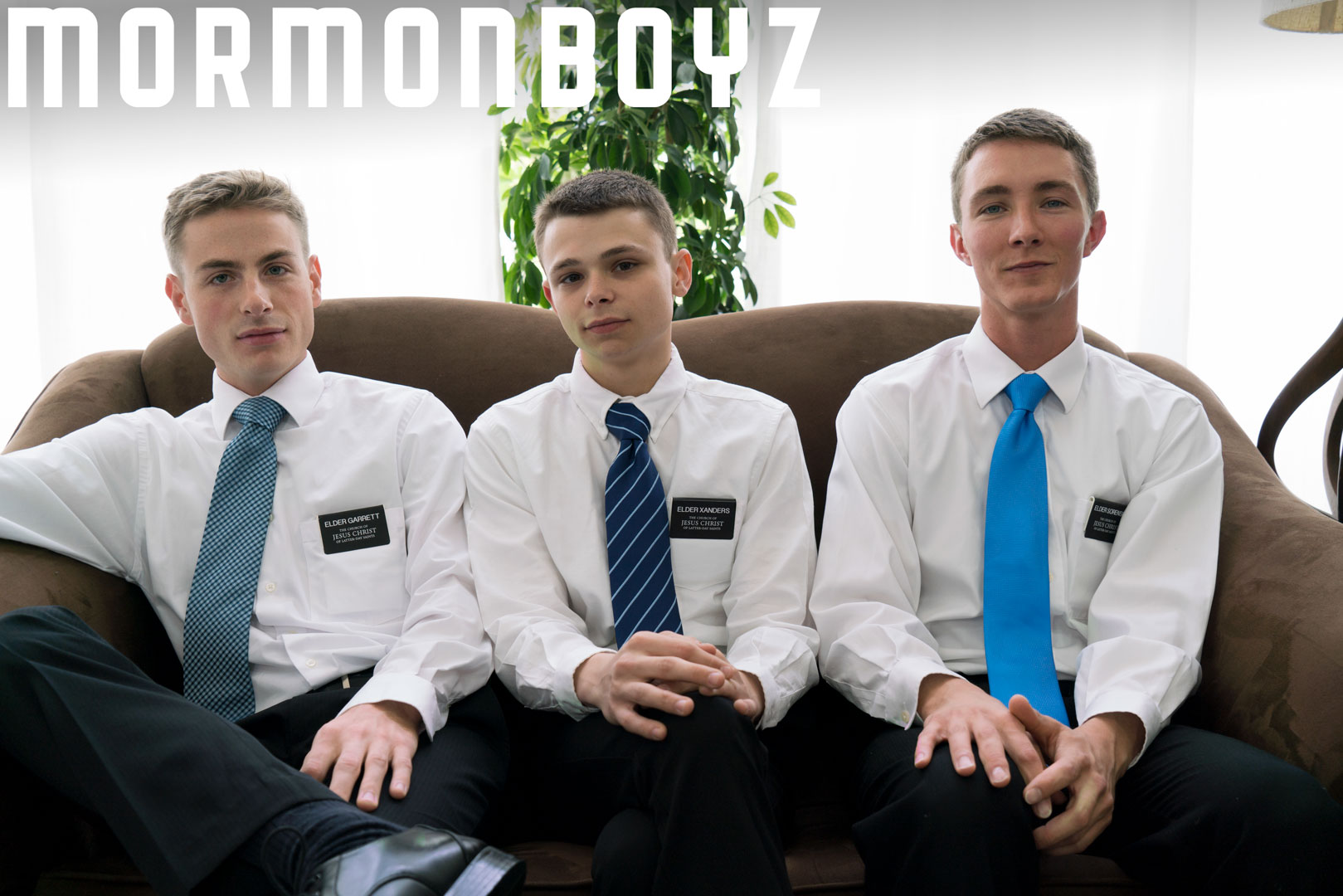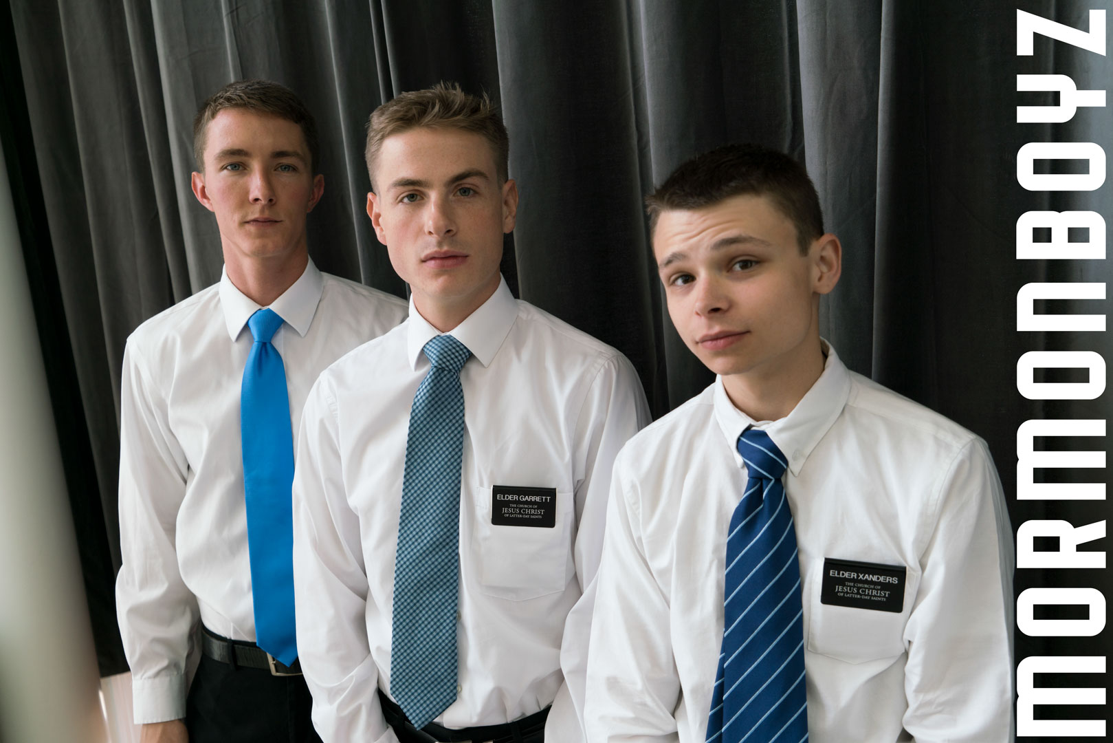 Elder Garrett, Elder Sorensen and Elder Xanders in a Mormon Boyz threesome