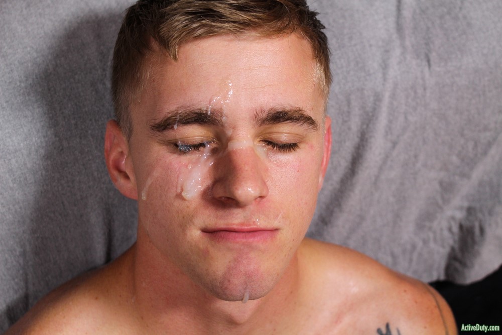 They fuck Ryan until he can’t take it no longer and has to cum. The brothers have no problem with that since their balls are ready to explode from all the fucking they just did. Ryan gets on his knees and the brothers blast load after load all over his face and chest. Ryan can hold his load back no longer and the cum dripping off of him is making him nut all over himself as he finally releases his warm cum.