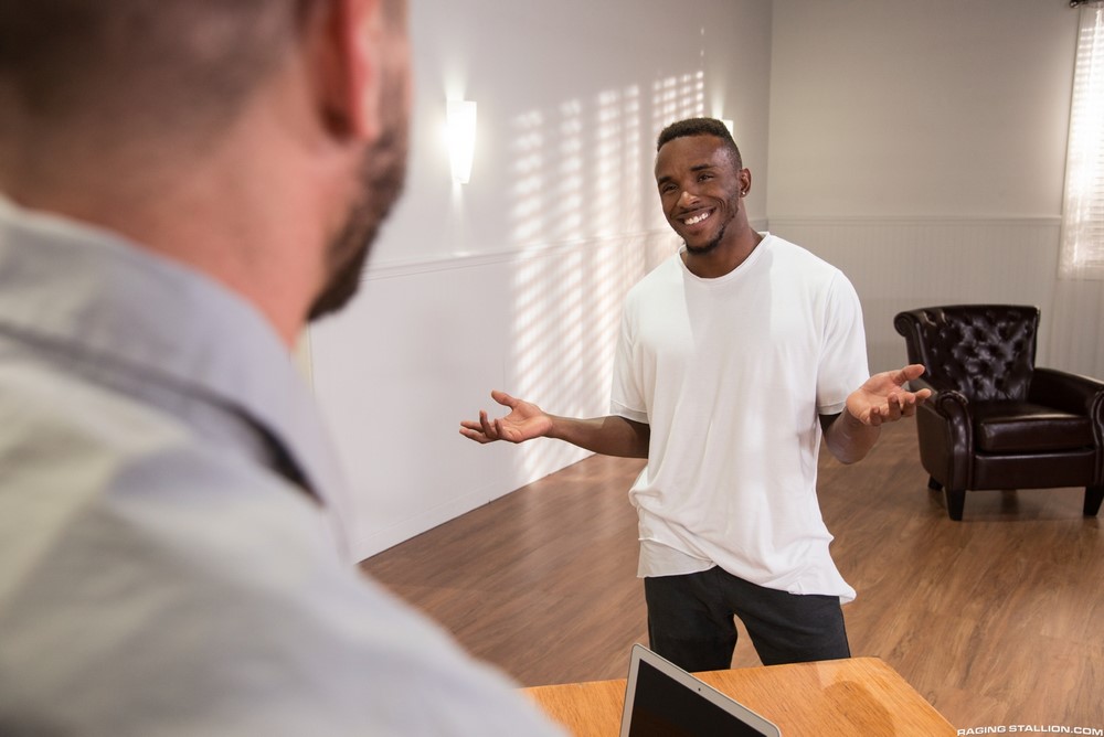 For the third scene from their “It’s Coming” movie, Raging Stallion has paired up hung hotties Wesley Woods and Pheonix Fellington. And the two of them make a great pair! Wesley is a hot real estate agent who is putting the famous murder house back on the market after a slick makeover. When Pheonix arrives at the open house, Wesley realizes that Pheonix isn’t a potential buyer, but an online hookup that he invited to the empty house before it opens.