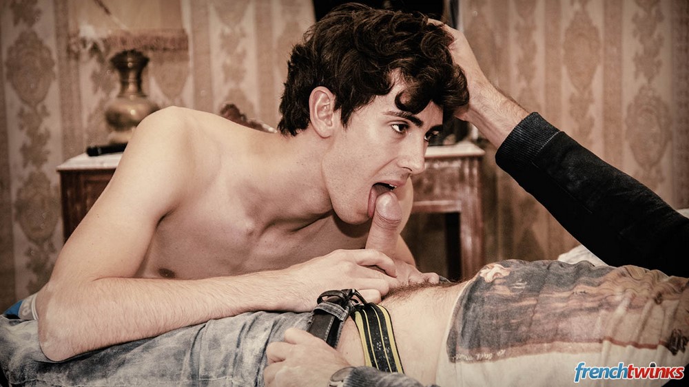 It turns out, the ghost of Baptiste is real and has a high libido. Doryann finds himself naked, gagged and tied to a chair, while he witnesses Baptiste take over his role as a top. Paul is blindfolded and goes to town on Baptiste’s hard cock. The ghost licks and fingers Paul’s smooth hole and then fucks him good in various positions, before shooting his creamy load into Paul’s hungry mouth. Doryann has no choice to watch Paul getting used by Baptiste.