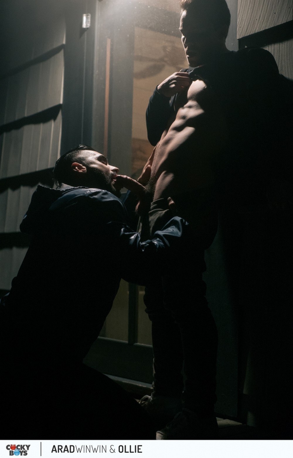 The moon is full, the tide is high and hormones are racing as Ollie goes on the prowl and follows Arad Winwin to the shore of a windswept beach. Their conversation is brief as Ollie takes Arad to a secluded spot outside a nearby beach house where they make out. Ollie realizes his fantasy of being controlled by an ‘older’ man as Arad goes down on him. Ollie wants more though and takes Arad inside to give him full rein.