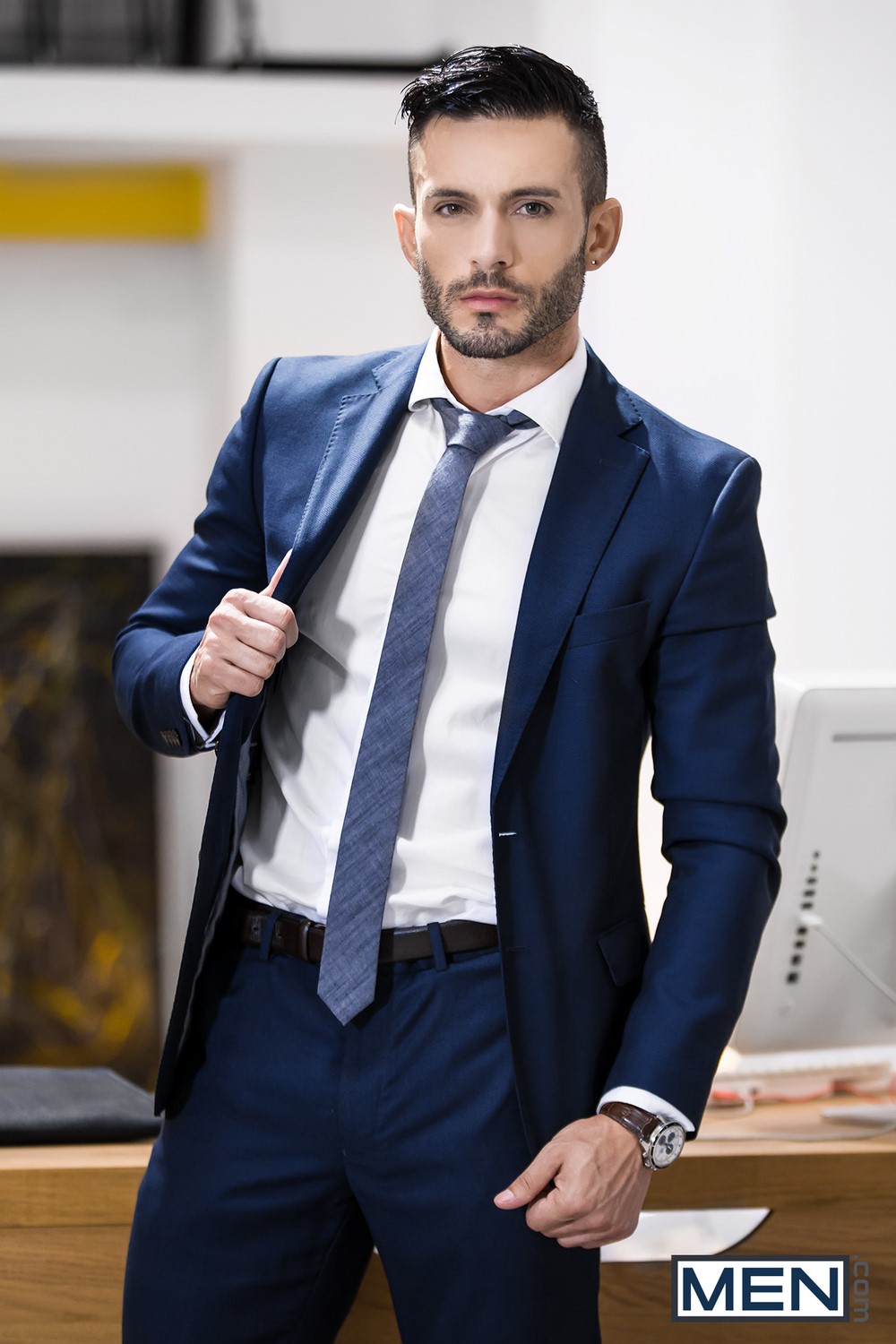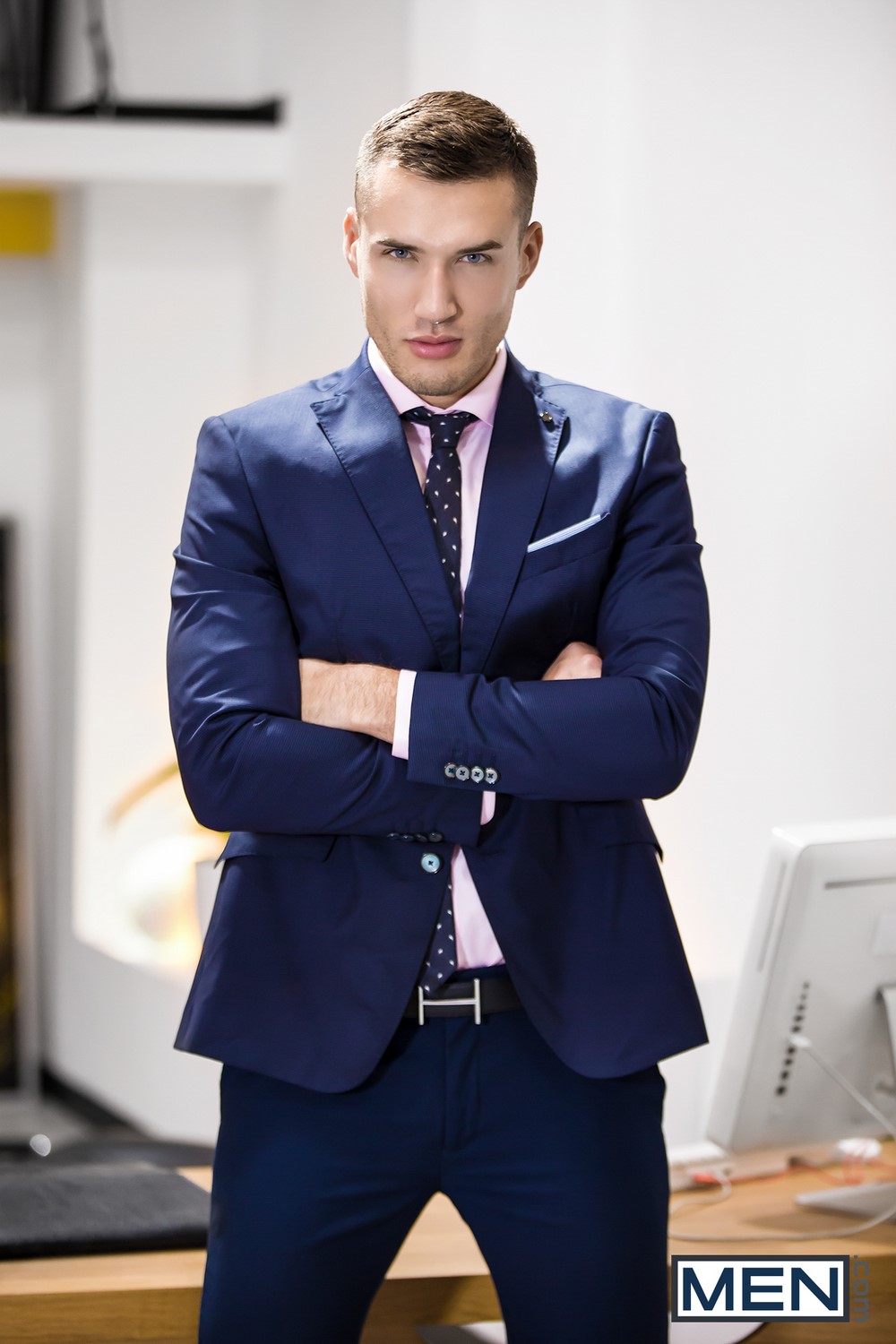 Gay porn mega site Men.com has released the third scene from their “Consulting Cock“. For this scene, the studio has paired up hot and horny hunks Theo Ford and Andy Star. The MEN members have rewarded this suit-themed scene with a 96% score, so make sure to watch it.