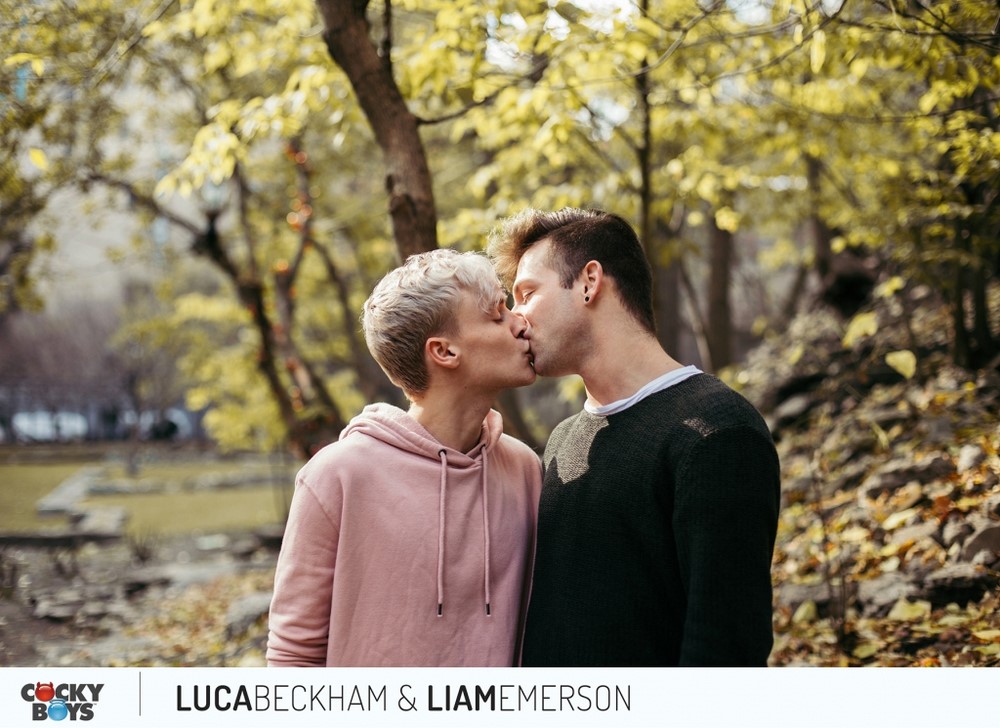 Young Canadian hunk Liam Emerson started his porn career with Squirtz back in 2013. He then moved on to VideoBoys and also did a scene for CockyBoys. Now – a couple of years later – Liam is back and they have paired him up with blond newcomer Luca Beckham. Bystanders watching Liam and Luca in the park might assume the hand-holding pair are boyfriends, given their loving smiles and total attention to each other.