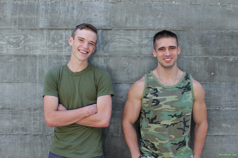 Active Duty has paired up two of their most favorite recruits; muscle hunk Mathias and younger soldier Scott Finn. The sexy Mathias is the first to get a nice hard cock down his eager throat. He starts deep-throating Scott like the pro he has become without hesitation.