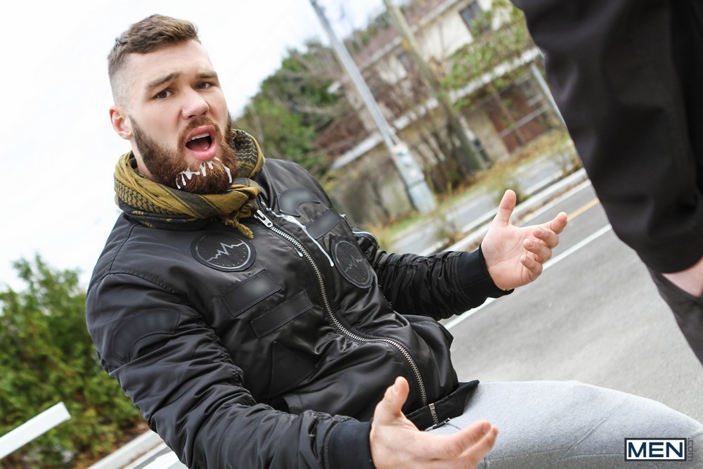 This latest prank involves fake cumming on random guys then running away. His first victim, Morgan Blake, catches him and discovers the cum is fake but lucky for Thyle, the bearded hunk wants the real thing. Thyle services Morgan’s hard dick, before rides that cock with his ass. Next up are missionary position and doggy-style, followed by two explosive cum shots. This time, there’s no fake cum involved.