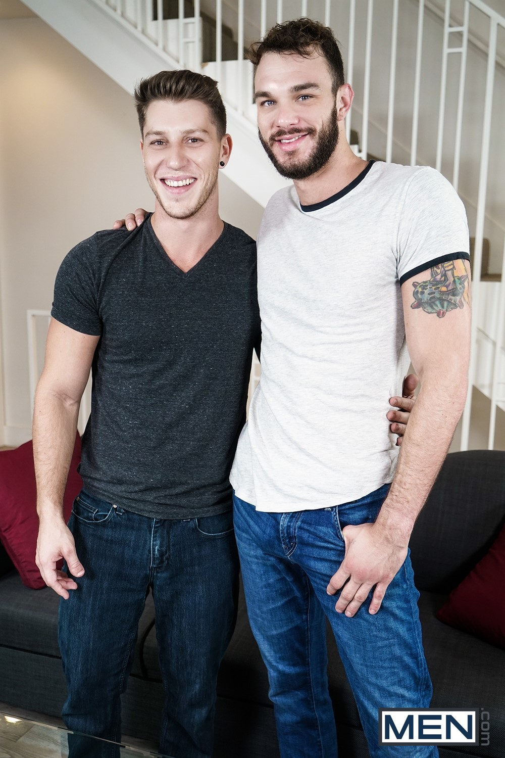 In the first scene from the Men.com mini-series “Gaymates“, straight boy Cliff Jensen jerked of while spying on his landlords Paul Canon and Jay Austin. The second part from this series has been released and it’s a pretty hot scene. Paul confronts Cliff on catching he and Jay the other day and entices him on finishing what he started while his girlfriend is in the shower.
