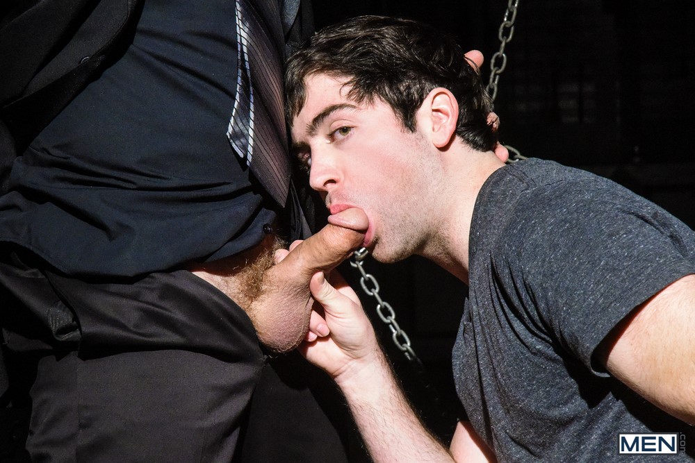 Porn newcomer Damien Pierce makes his Men.com debut in the second scene from the “Daddy’s Dungeon” mini-series. Young Damien is in a bind and needs some quick cash. He pays a visit to the dungeon where he meets business man John Magnum. The hot daddy is more than willing to help him out if he can help him bust a nut.