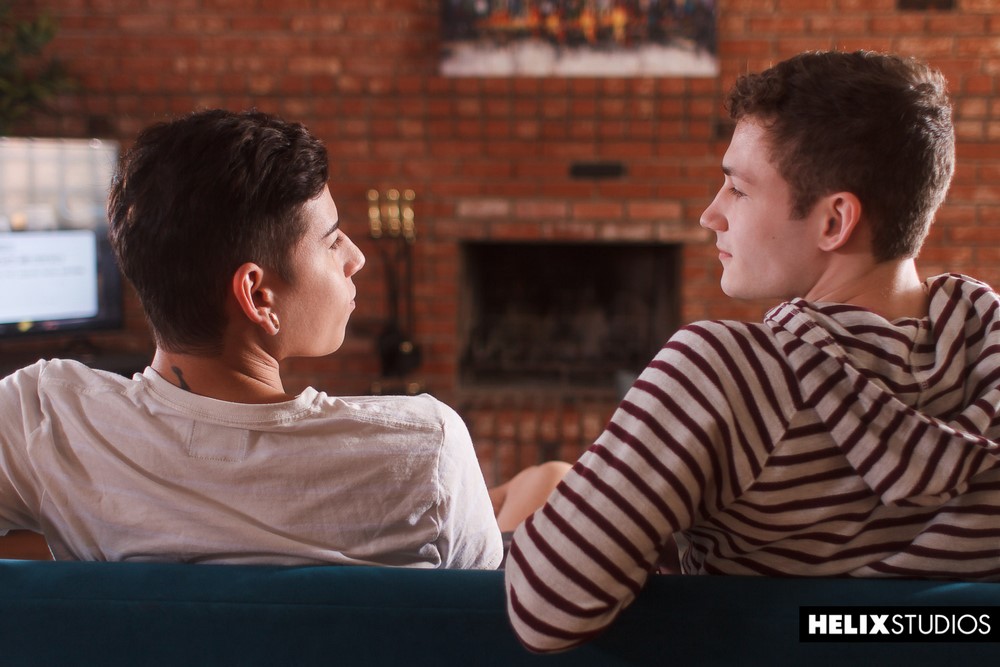 Helix Studios‘ latest release is called “Wandering Hands” and brings together Aiden Garcia and Danny Nelson. The latter one has been crushing on his buddy Aiden for a while and when Aiden finally invites him over to watch a movie, he promises himself to don’t let this opportunity go to waste! He isn’t sure if Aiden feels the same way so he tests the waters by “accidentally” grazing Aiden’s legs.
