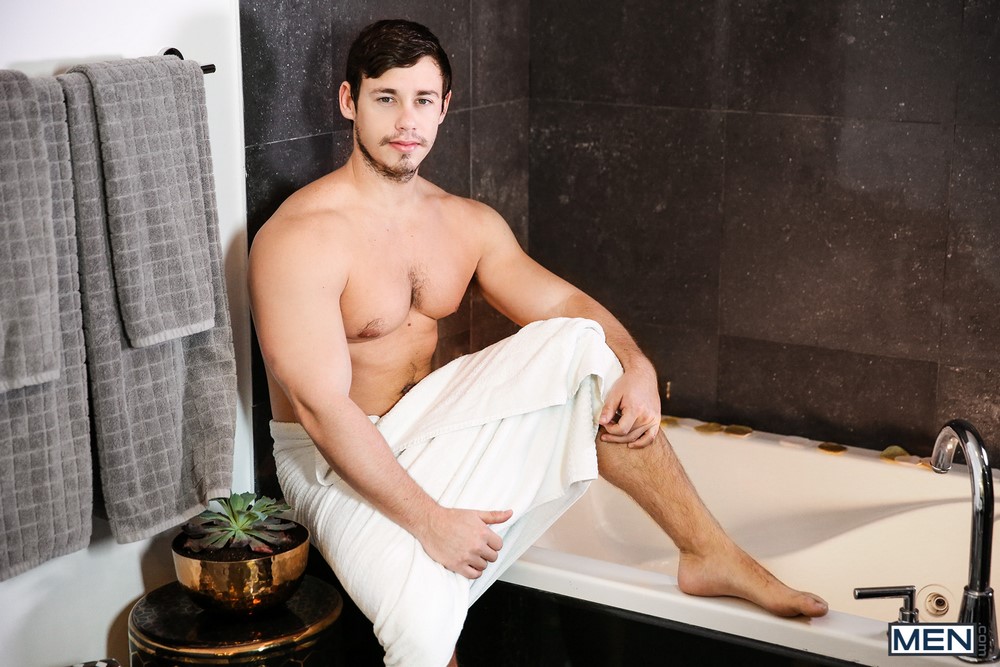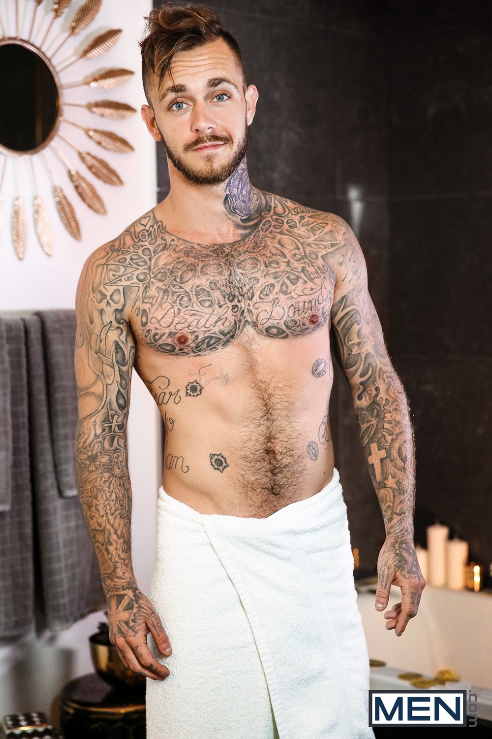 This is the first scene from a brand new Men.com mini-series, called “Nostalgia“. For the opening scene, the studio has paired Tobias up with inked hunk Brian Michaels. Tobias is having some marital issues and needs a little space to clear his mind. He ends up spending a few days with his ex Brian and things soon heat up into a nostalgic moment.
