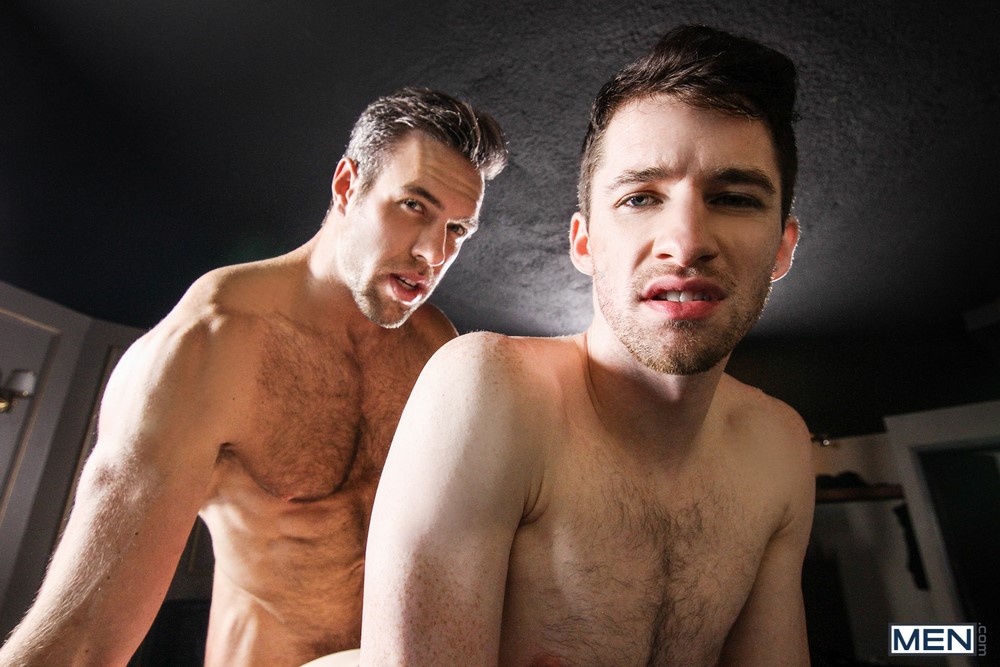 In the second scene from the Men.com mini-series “Cheaters“, hung top Alex Mecum gets tricked by his boyfriend Thyle Knoxx and ends up fucking his eager hole. YouTube star Davey Wavey has a (non-sexual) guest role in this scene.