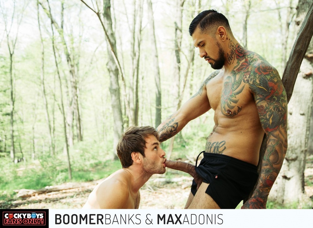 Boomer Banks barebacks Max Adonis in a hot oudoor scene from CockyBoys
