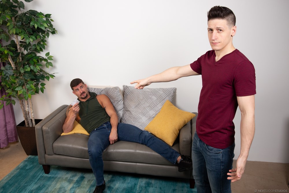When Sean Maygers agrees to house sit for Dalton Riley, he didn’t expect to immediately find a picture of himself stashed in the cushions of Dalton’s sofa. Pulling it out, he confronts Dalton, and Dalton tells him he may have a little bit of a crush on Sean. Sean is weirded out at first, but Dalton convinces him to stick around and see what happens. Sean is hesitant, but when Dalton wraps his lips around Sean’s cock and gets him instantly hard, Sean agrees that staying is probably in his best interest. It proves to be a wise decision, as Dalton proceeds to show Sean the time of his life, first by giving up the ass and letting Sean have his way, then by flipping Sean over and fucking his brains out. Sean has never taken a dick before, and Dalton is careful not to bang him out too hard his first time, but by the time they switch positions from riding to missionary, Sean has transformed into a bona fide cock pig, telling Dalton to pound him. Dalton does as Sean instructs, and Sean nuts all over himself, releasing both his inhibitions and his creamy load all in one fell swoop.