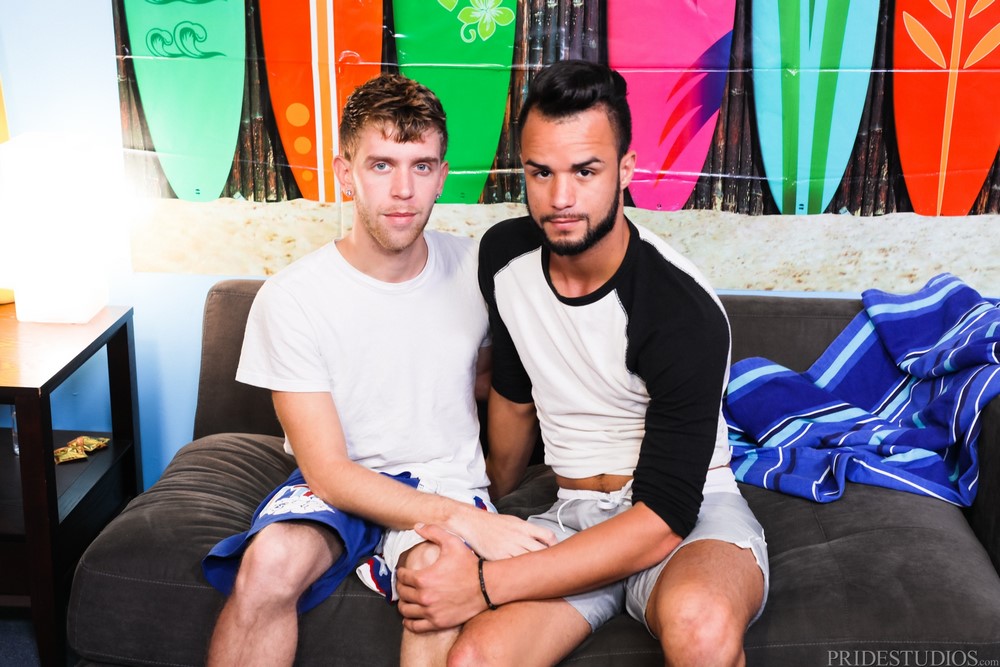 Pride Studios network site Dylan Lucas has released a hot new scene, called “The Surf Shack“. They have paired up uncut Latin bottom Javier Cruz and big-dicked jock Todd Haynes. The surf buddies make out and take turns sucking each other’s cocks, before Javier bends over for Todd. The hung top works Javier’s tight hole with his tongue and then shoves his meaty member deep inside to give him a hard and deep pounding.