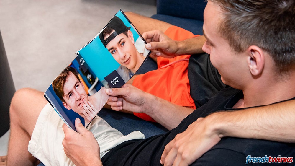 The two buddies begin to kiss and undress. They are quickly hard in their boxers and their beautiful cocks are soon out of their underwear. Baptiste and Enzo jack off each other then Baptiste sucks Enzo with all his know-how. Then it’s up to the blond to return the favor to Baptiste and offer him a long blowjob in deep throat. More and more excited Enzo switches Baptiste on the back and starts playing with his ass.