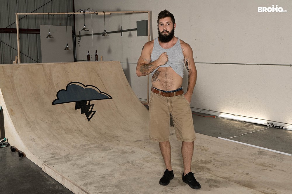 Lean hunk Zane and muscular Jeff Powers enjoy stroking their dicks together. Once hard and erect, brown-haired Zane grabs Jeff’s big dick and goes to town on it slobbering and sucking away. Bearded Jeff returns the favor with a wet blowjob before ramming Zane’s tight hole raw and creaming all over his back.