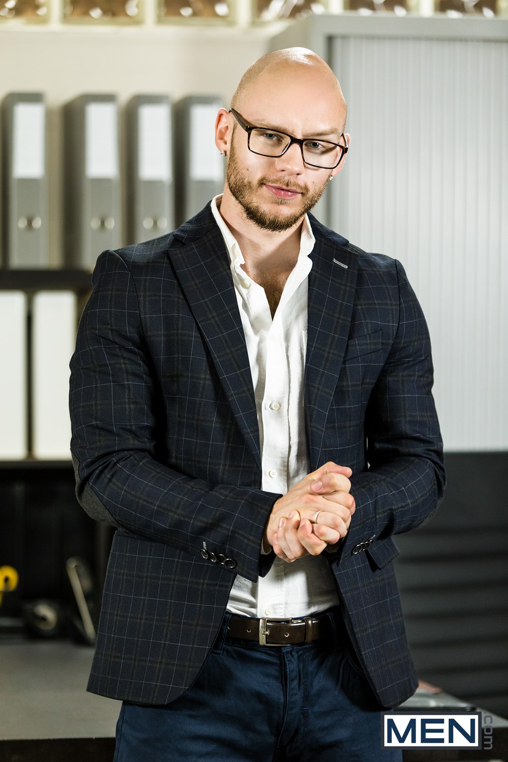 This release – called “Power Dynamics” – marks the Men.com debut of hairy hunk Orson Deane. He has been paired up with Paddy O’Brian and the scene has been rewarded with a 93% score by the Men.com members. Bald-headed Orson is interviewing for a new job with chiseled hunk Paddy. He really wants the job but doesn’t have all the skills necessary.