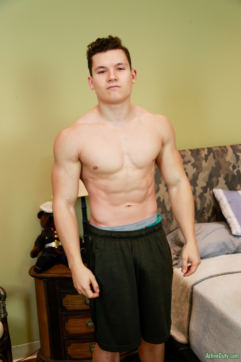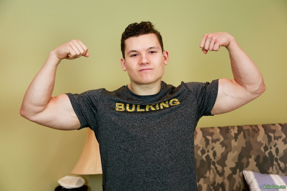 Active Duty hottie Marc Montana will be sucking cock for his first time and Johnny B is the lucky one. Dirk walks in on Johnny beating off in the room and informs him that Marc will be showing up soon. Johnny is excited to be his first as he sits stroking his cock waiting for him to arrive. Once Marc arrives he sees Johnny’s big cock and soon his clothes are off and they both begin some touching.