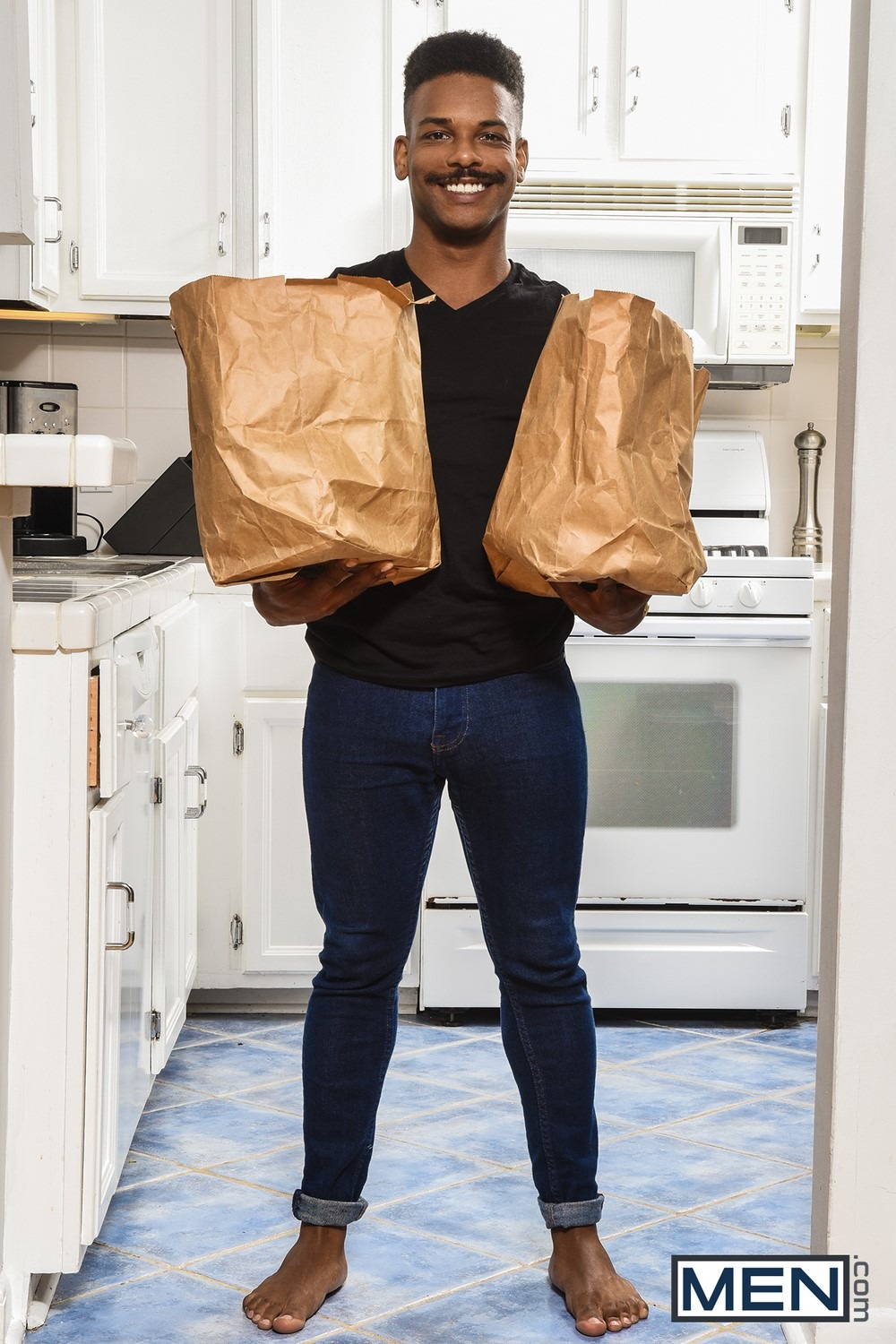 Fit cutie Adrian Hart is just trying to be helpful, offering to carry in some groceries for a woman in need. When he gets into the woman’s house and meets her son, the athletic brown-eyed Michael Boston, he gets so uncontrollably horny that he starts masturbating with a cucumber. Michael spies on him, jerking his big curved cock while watching from around the corner! It’s not long before these two horny dudes can’t resist any longer and start fucking right there in the kitchen, which Michael’s mother is… not thrilled about.